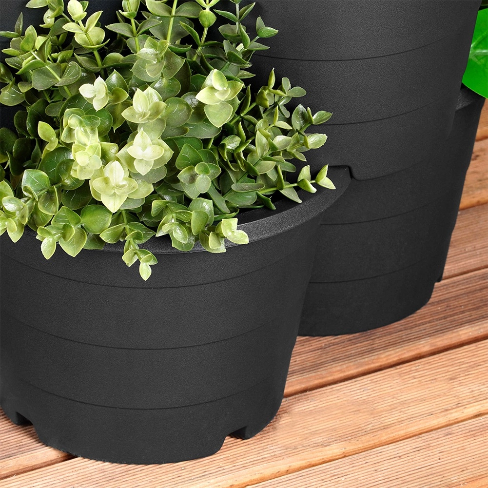 Fioriera in plastica a cascata nera, set impilabile da 4 pezzi