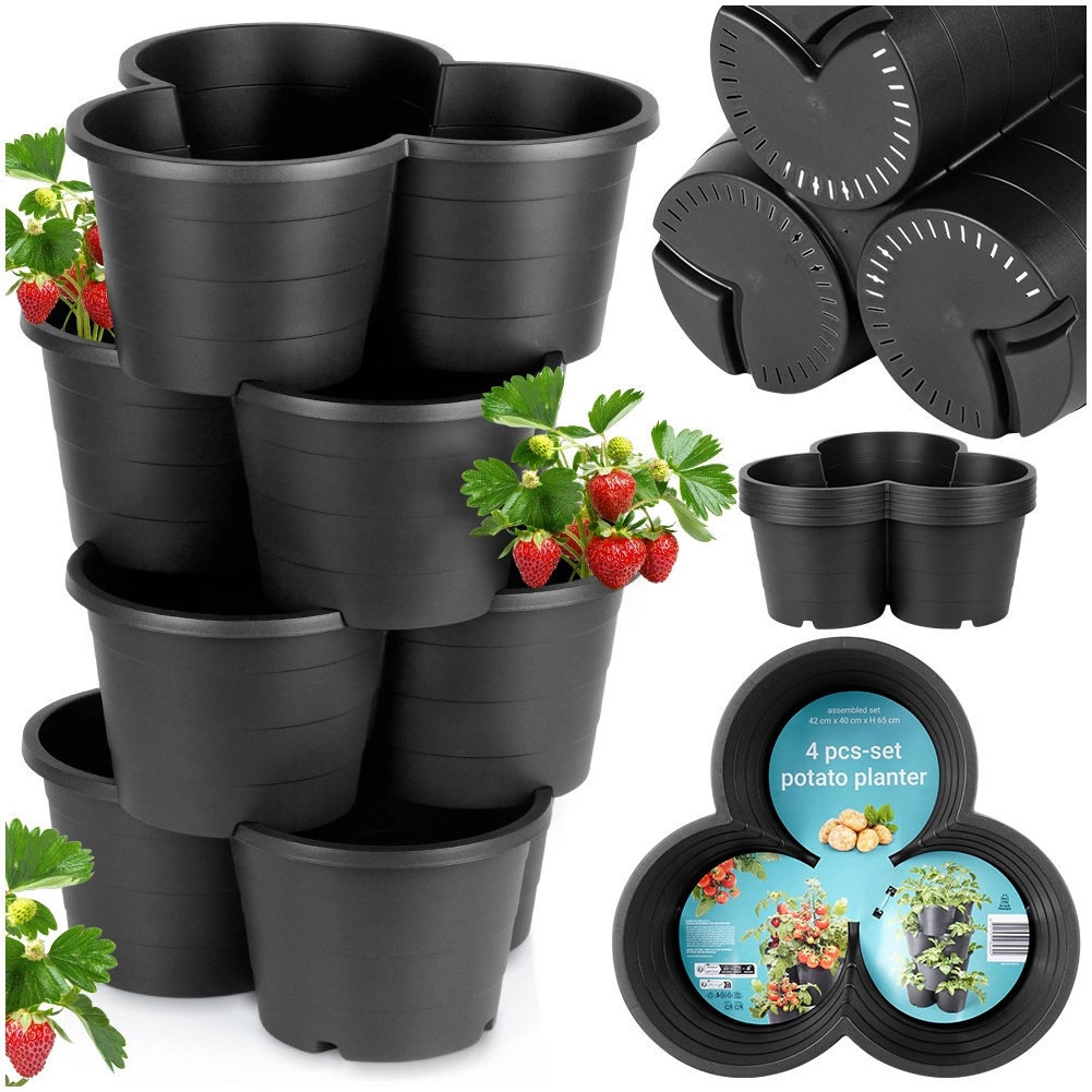 Crea il tuo giardino verticale anche in poco spazio. Questo set impilabile di 4 fioriere in plastica nera permette di coltivare fino a 3 piante per ogni modulo, con fori di drenaggio per una crescita sana e resistenza alle intemperie per l’uso esterno tutto l’anno.