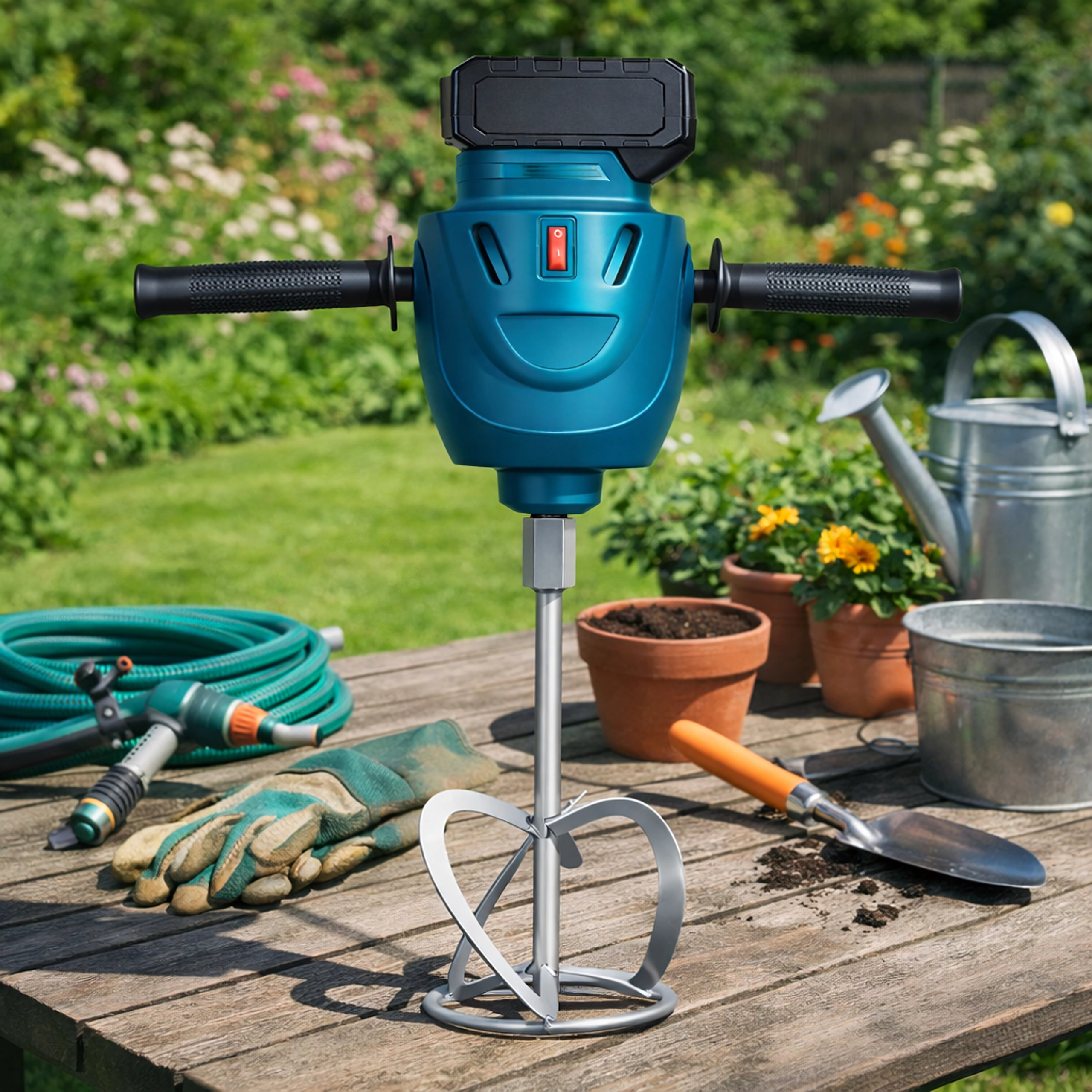 • 2 in 1: miscelazione di composti edili e foratura di fori nel terreno