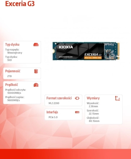 Ottieni la velocità di nuova generazione con l’SSD KIOXIA EXCERIA G3. Offre fino a 10.000 MB/s di lettura sequenziale e 9.600 MB/s di scrittura, supporto PCIe 5.0 e capacità di 2 TB nel compatto formato M.2 2280. Ideale per lavoro veloce, applicazioni AI e gaming con bassa latenza e prestazioni stabili.