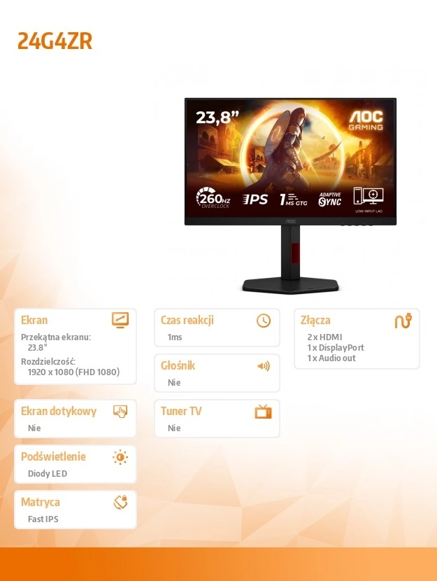 Ottieni un vantaggio con il monitor gaming AOC da 23,8" dotato di pannello Fast IPS e frequenza fino a 240 Hz. Goditi risposta rapida, immagini fluide, colori ricchi ed ergonomia con rotazione in verticale (Pivot) – ideale per il gaming competitivo e il lavoro quotidiano.