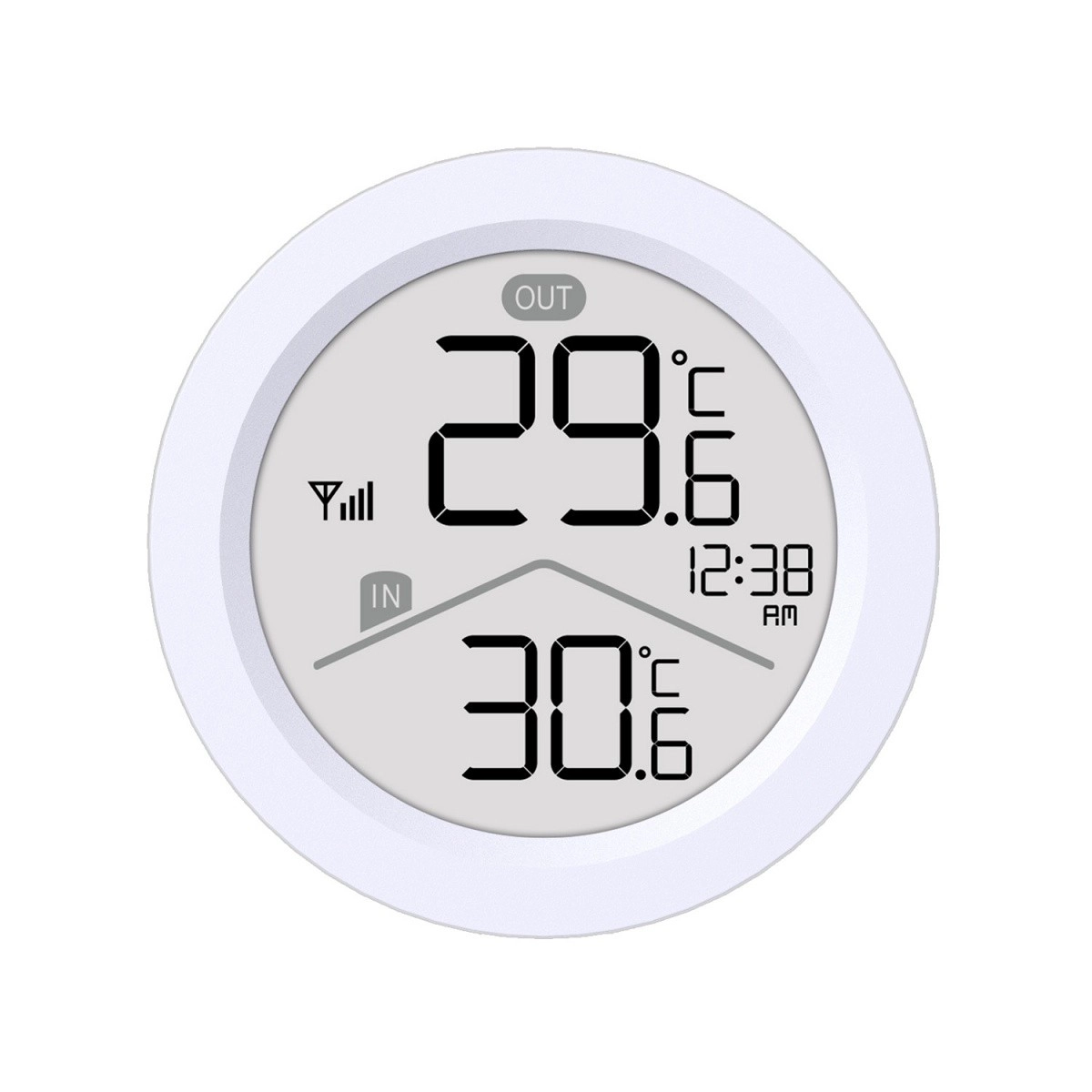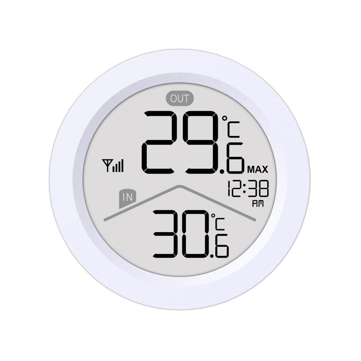 LCD con cifre grandi, indicazione IN/OUT, ora, icona segnale