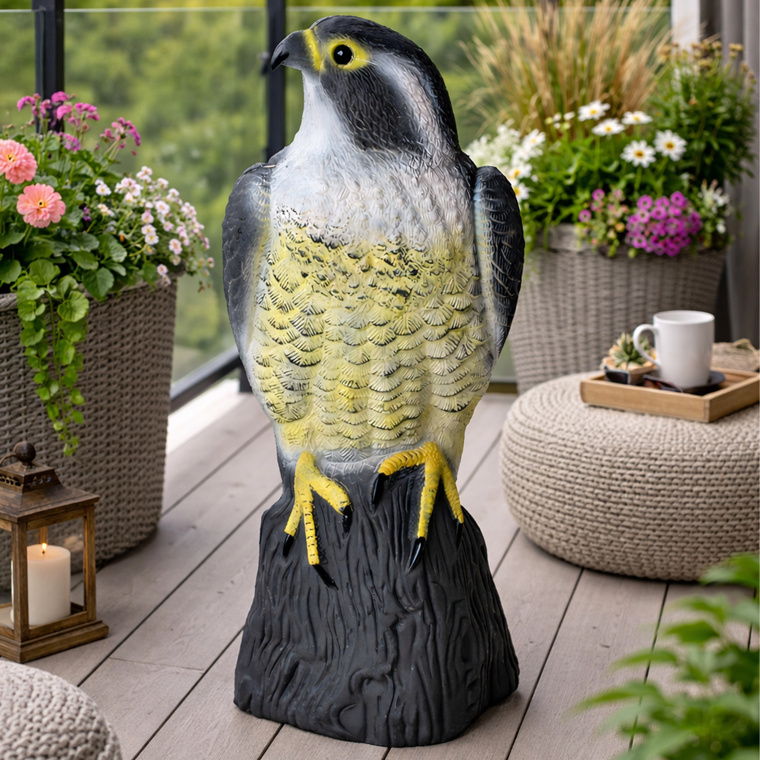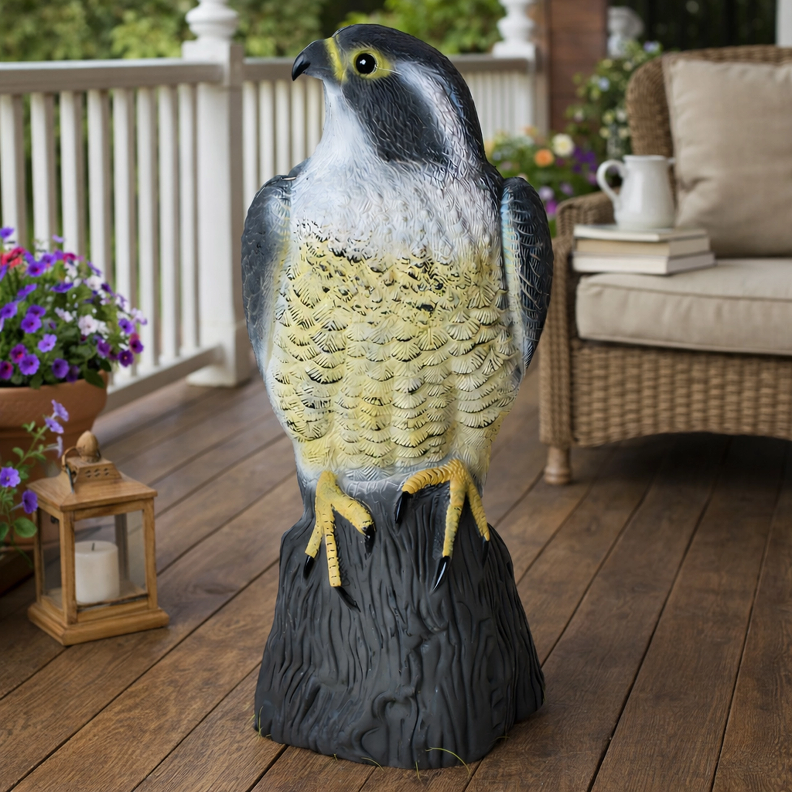 Proteggete il raccolto, i davanzali e le ringhiere dallo sporco e dai danni causati dagli uccelli. Questa finta realistica di falco sfrutta la paura naturale dei piccoli uccelli verso i rapaci, funzionando come dissuasore efficace senza chimica e senza rumore. Proporzioni fedeli, piumaggio dettagliato e colorazione a contrasto ne aumentano la credibilità sia in ambienti urbani sia naturali.