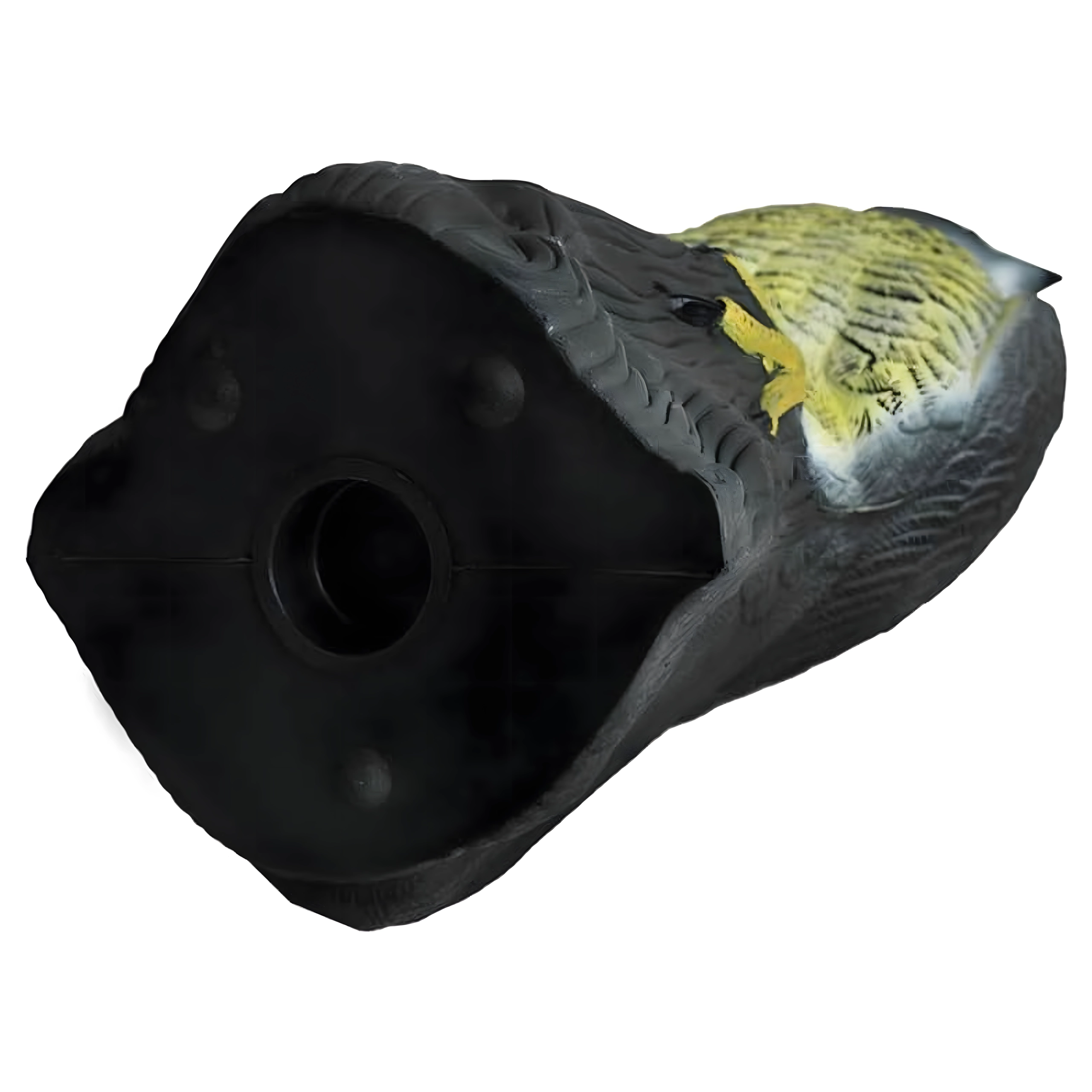 La finta è realizzata in plastica resistente, adatta all’uso esterno tutto l’anno. La base stabile consente un facile posizionamento su superfici piane (davanzali, ringhiere, tetti, terrazze, serre, aiuole). Per la massima efficacia, spostatela occasionalmente in un altro punto, in modo che gli uccelli non si abituino alla sua presenza.
