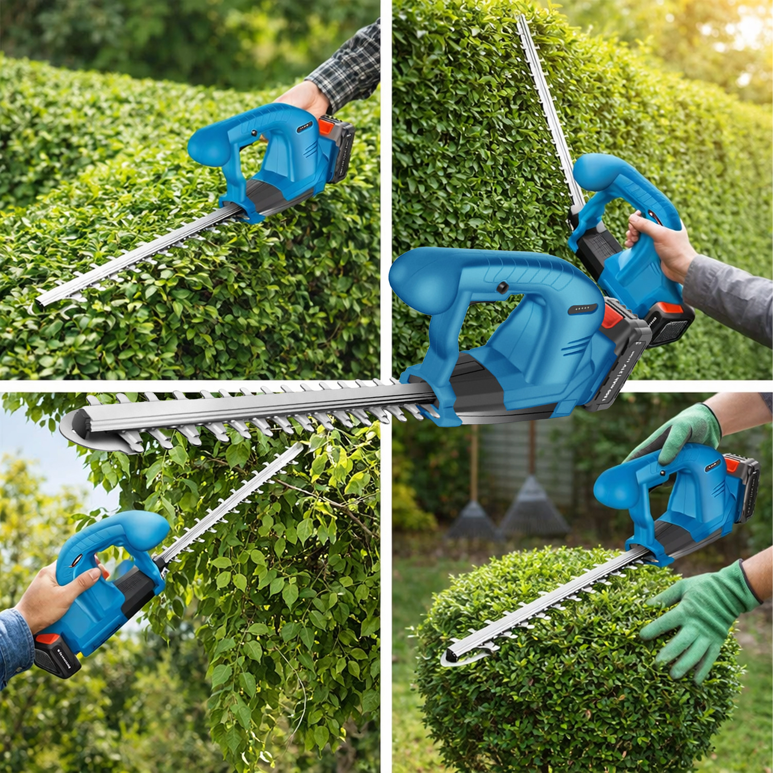 Questi tagliasiepi a batteria sono ideali per la manutenzione regolare del giardino. La lunga lama a doppia azione con denti affilati garantisce un taglio pulito e uniforme di rami e foglie, mentre l’impugnatura ergonomica e la protezione frontale aumentano controllo e sicurezza durante l’uso. Senza cavo, hai piena libertà di movimento in tutto il giardino.