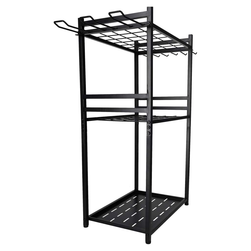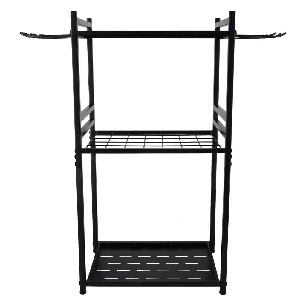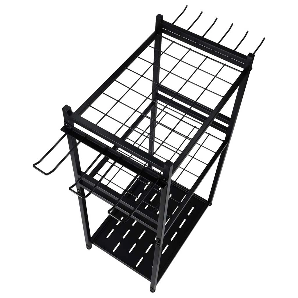Perfetto per giardino, terrazza, garage, cantina e casetta da giardino. La soluzione multilivello con ganci laterali fa risparmiare spazio e velocizza il lavoro. Il supporto è progettato per una lunga durata e per carichi quotidiani.