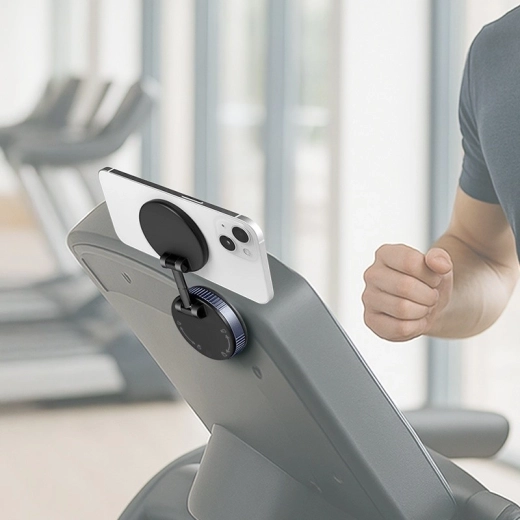La solida ventosa con sistema di bloccaggio garantisce un’adesione stabile su vetro, cruscotto o attrezzi da allenamento senza rilasci indesiderati.