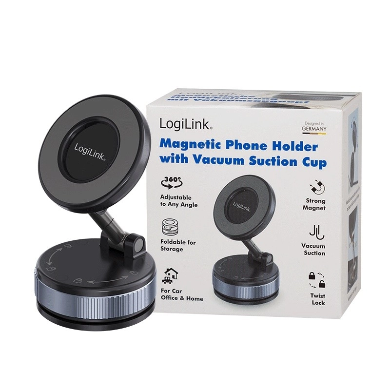 La ventosa a vuoto con blocco rotante di sicurezza aderisce saldamente a superfici lisce (cruscotto, vetro, console degli attrezzi). Il design pieghevole e compatto fa risparmiare spazio, così puoi riporre facilmente il supporto quando non lo usi.