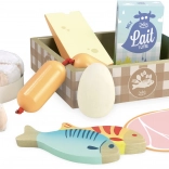 Deliziate i vostri bambini con un set di alimenti in legno di alta qualità che porta un tocco di realtà nella loro cucina giocattolo. Il set include: