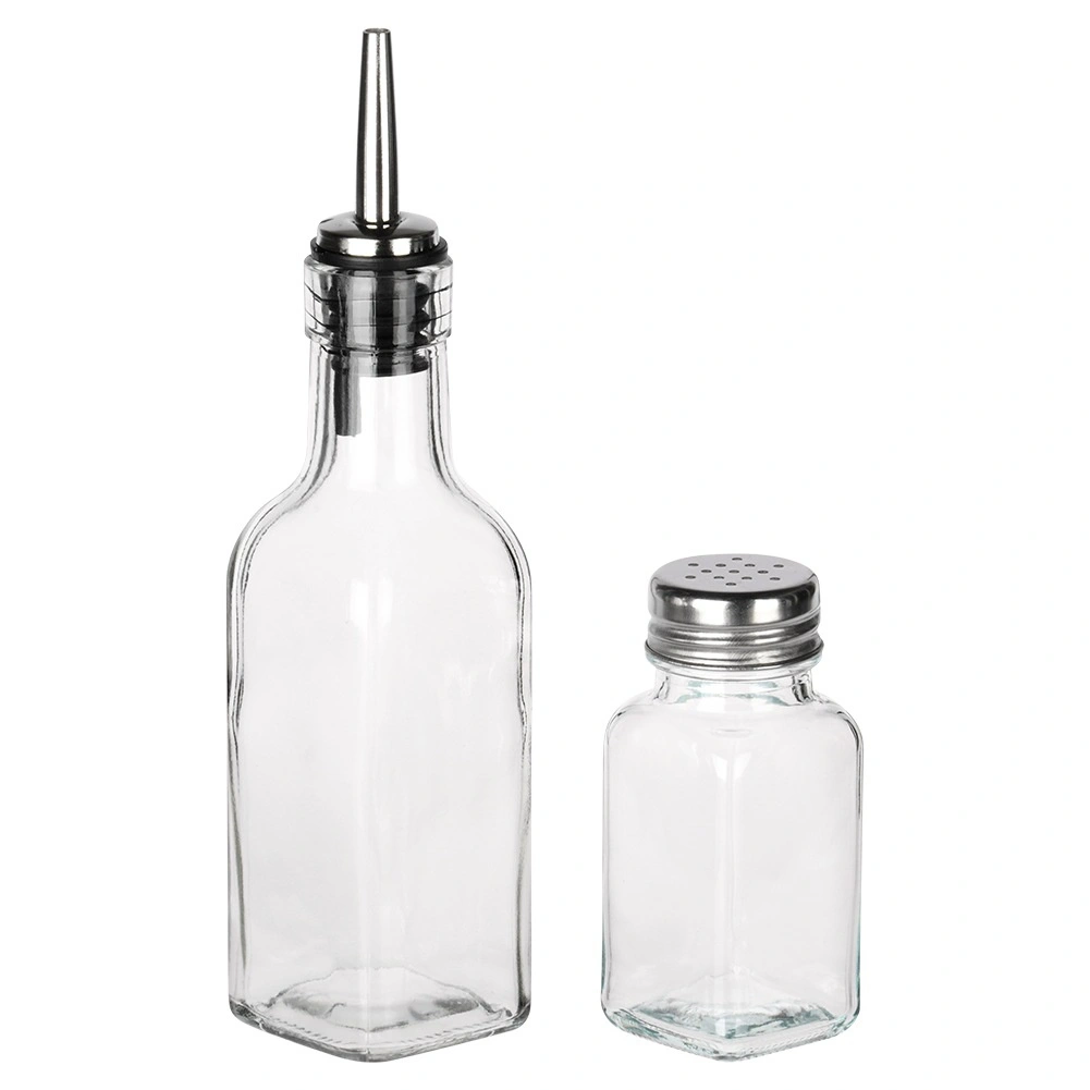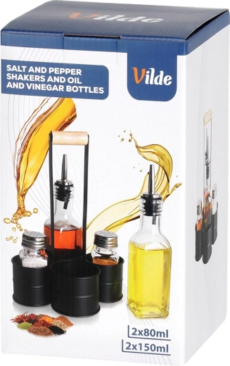 Il vetro trasparente di alta qualità facilita il controllo del contenuto, i dosatori in acciaio inox evitano gocciolamenti e traboccamenti e il metallo nero opaco dona alla cucina un look moderno. Il set è ideale per casa e ristorazione: i condimenti saranno sempre riposti in modo ordinato e sicuro.