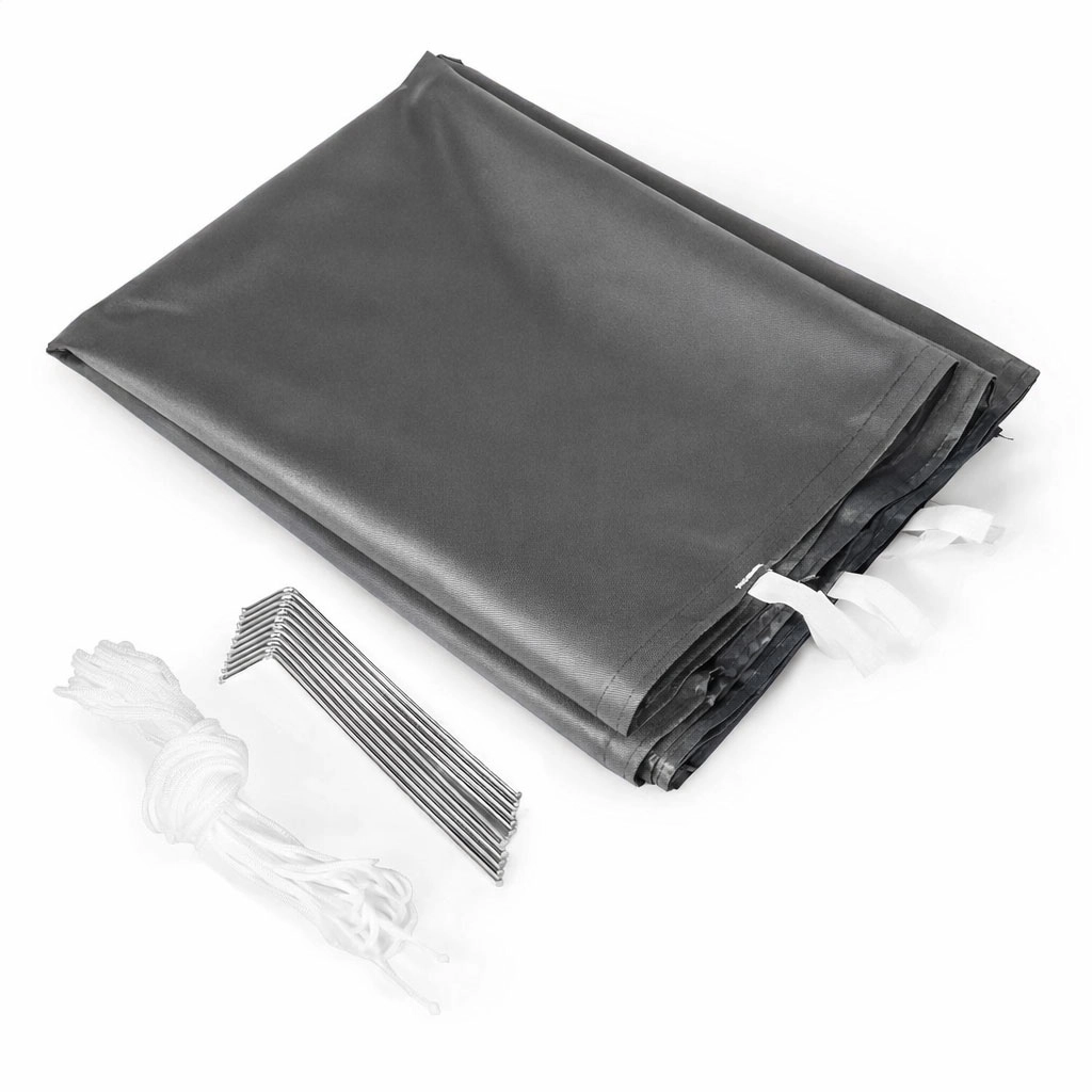 La struttura si apre praticamente da sola: basta estrarre le gambe e il telaio si espande automaticamente. Le gambe regolabili su 4 livelli consentono di adattare altezza complessiva e altezza d’ingresso alle condizioni del momento. I teli in tessuto 420D (tetto) e 210D (pareti) con rivestimento in PVC garantiscono resistenza a pioggia e sole. Per una maggiore stabilità sono disponibili piastre di base con fori di montaggio, picchetti e corde di tensione.