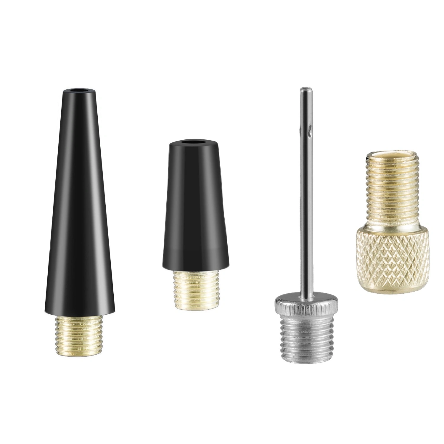 - Tubicino, adattatori per valvole (ago per palloni, ugelli conici, adattatore), cavo di ricarica USB-A – USB-C
