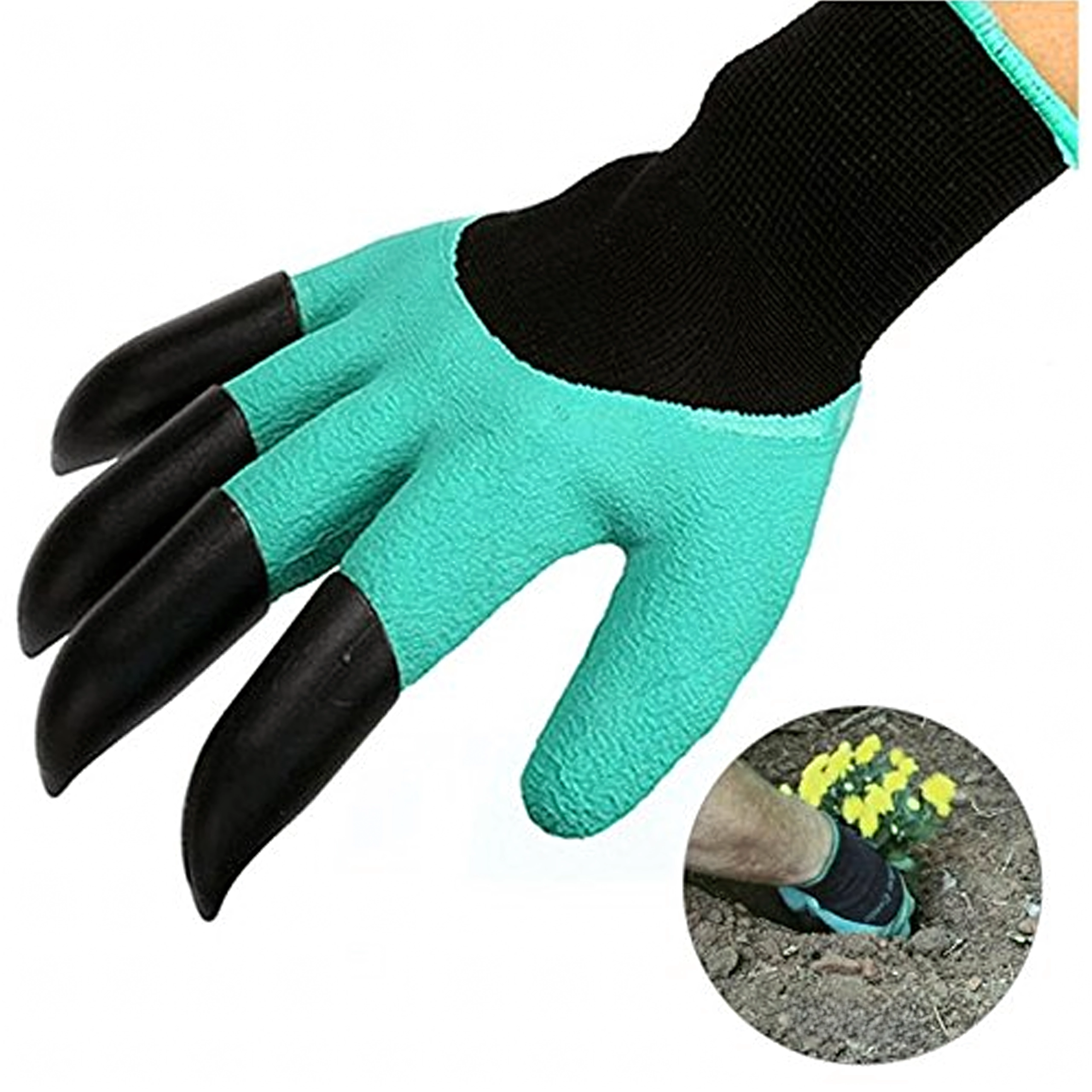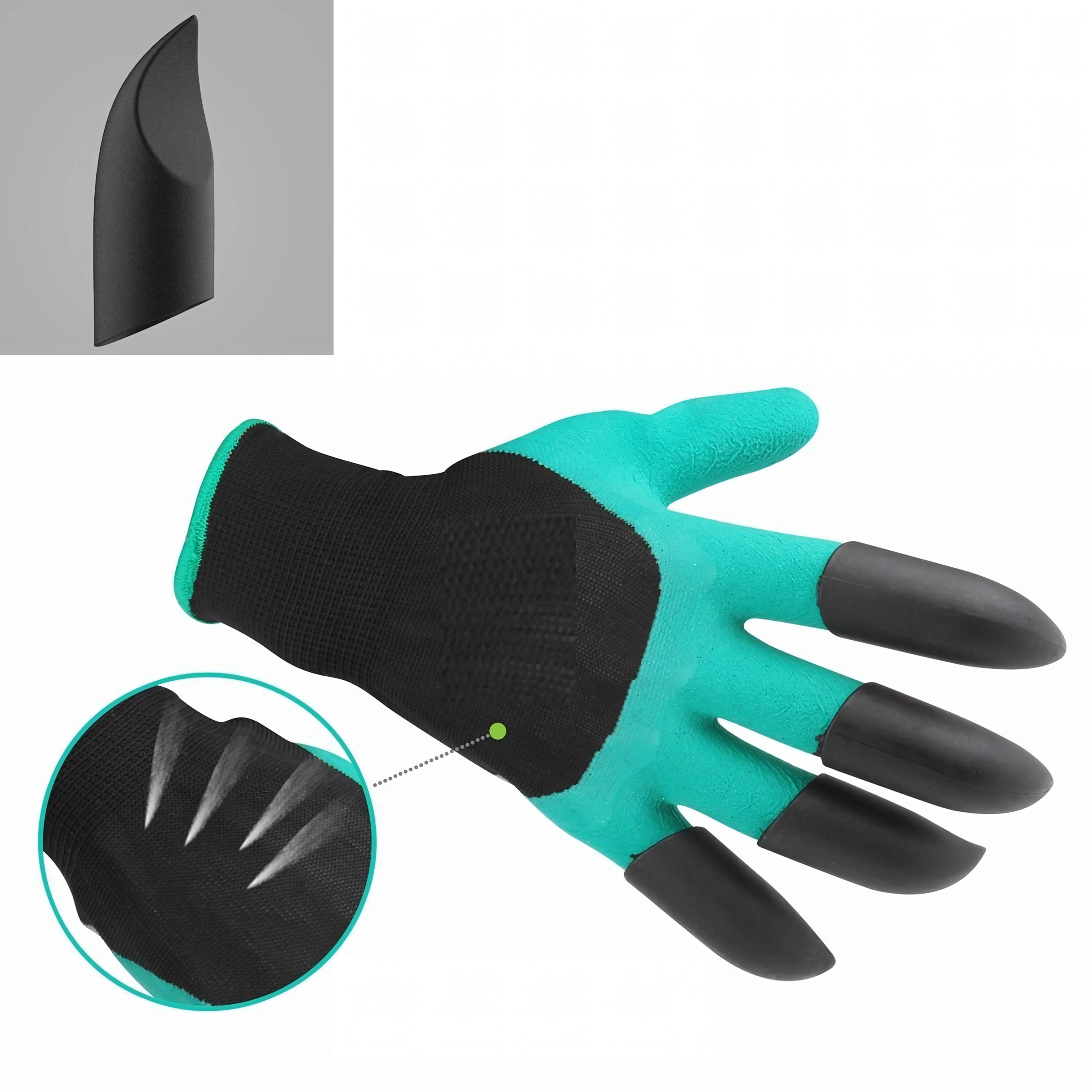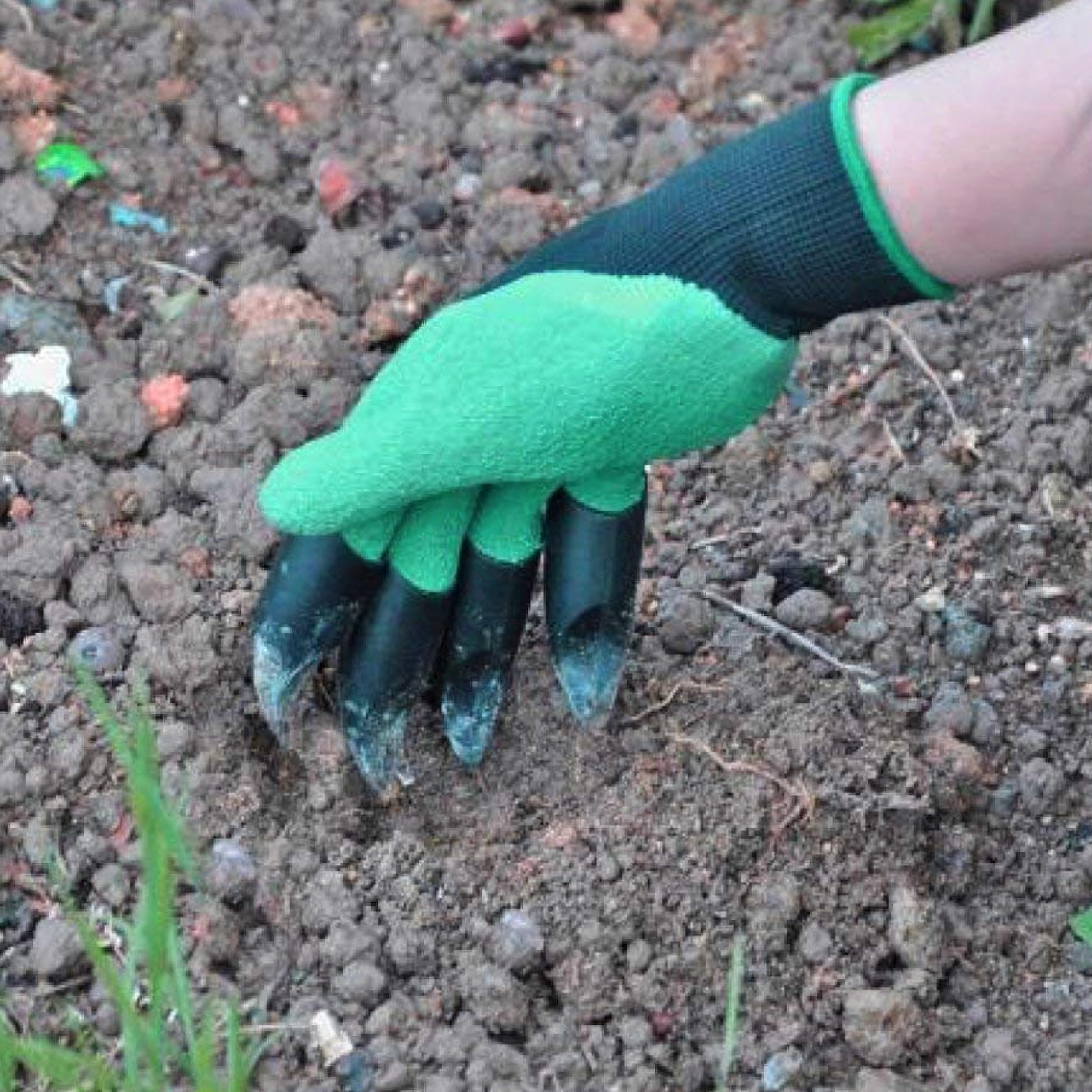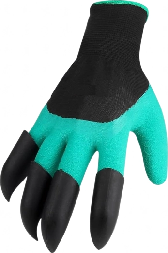 Le punte in plastica integrate sulle dita consentono in pochi istanti di scavare buchette, smuovere il terreno e raccogliere piccoli detriti senza altri attrezzi.