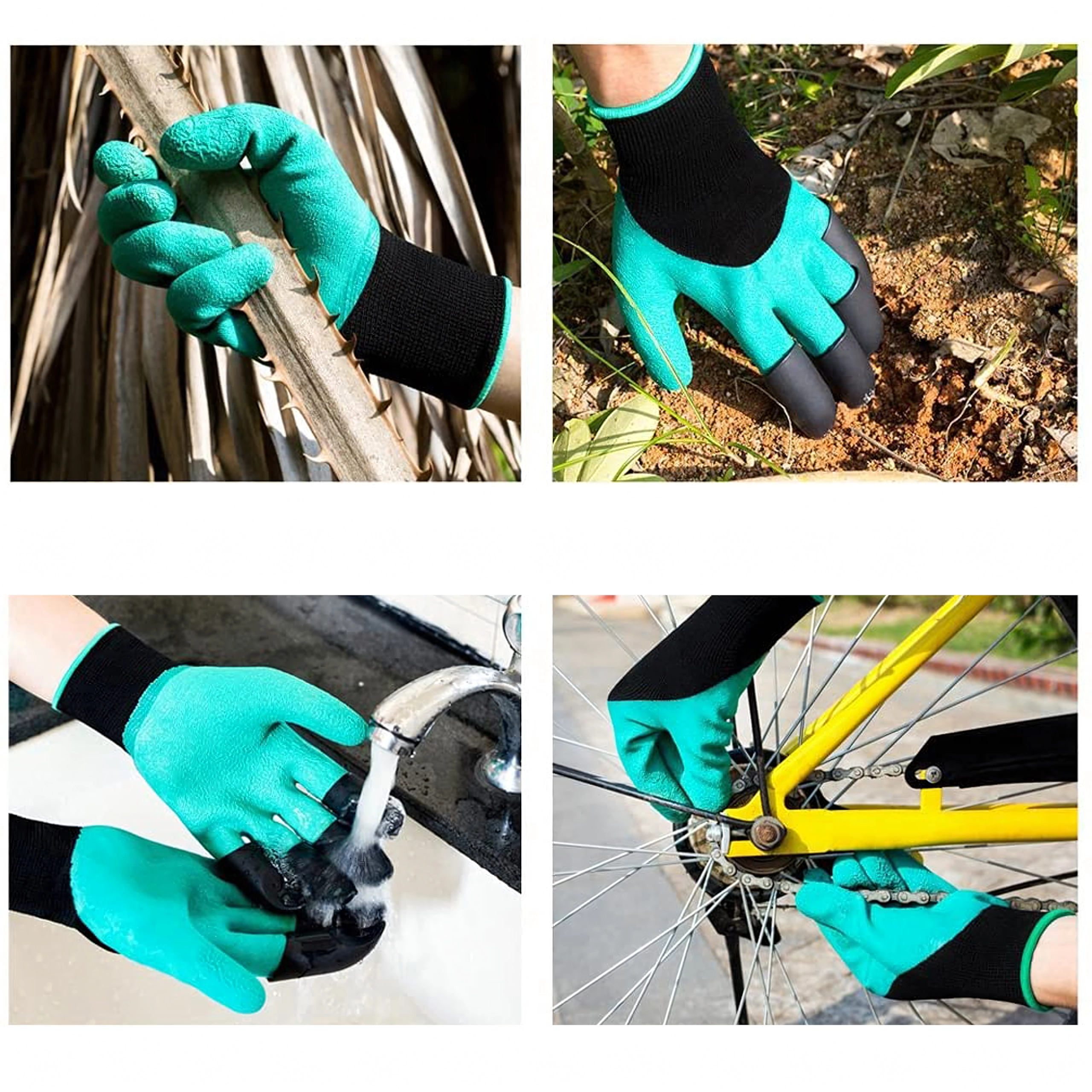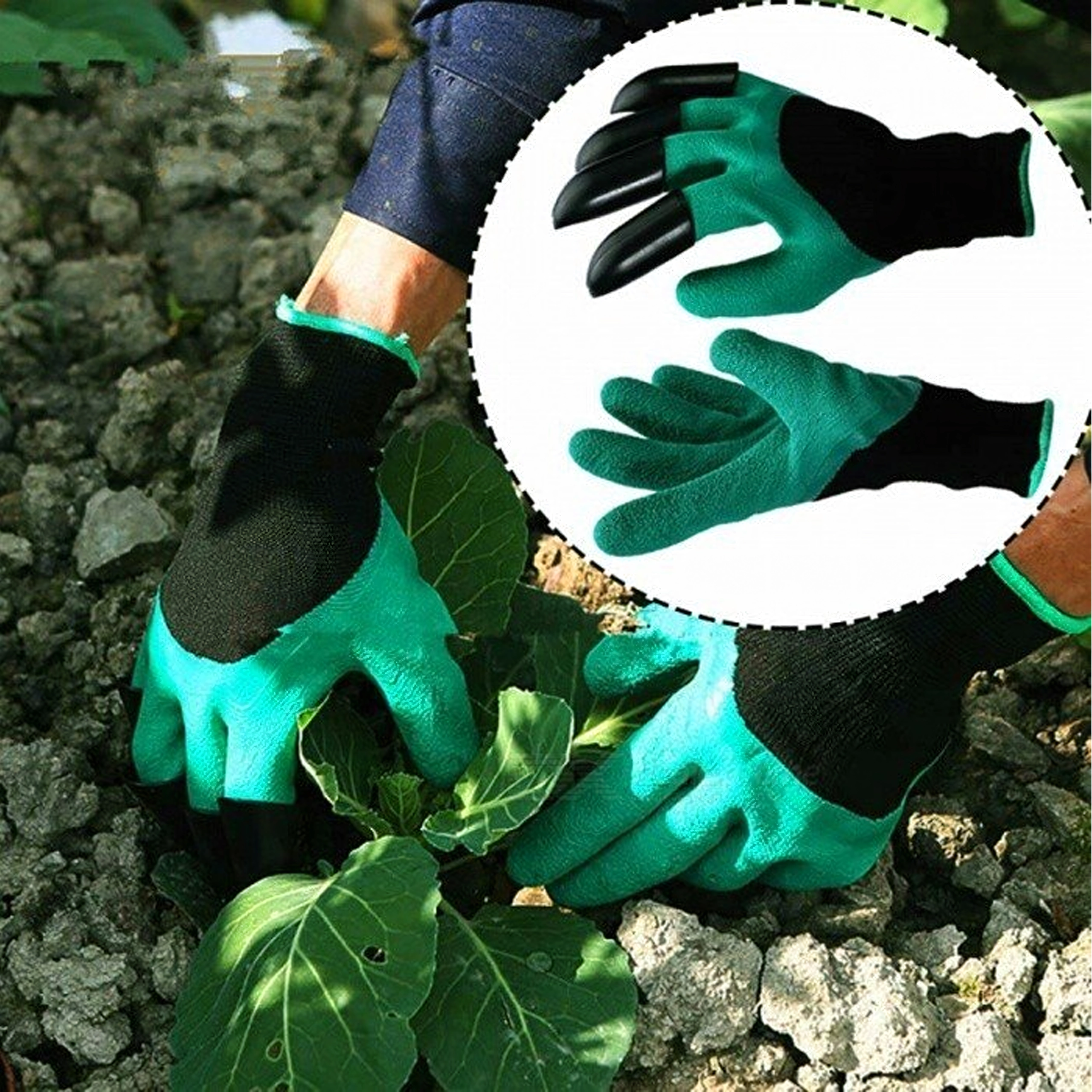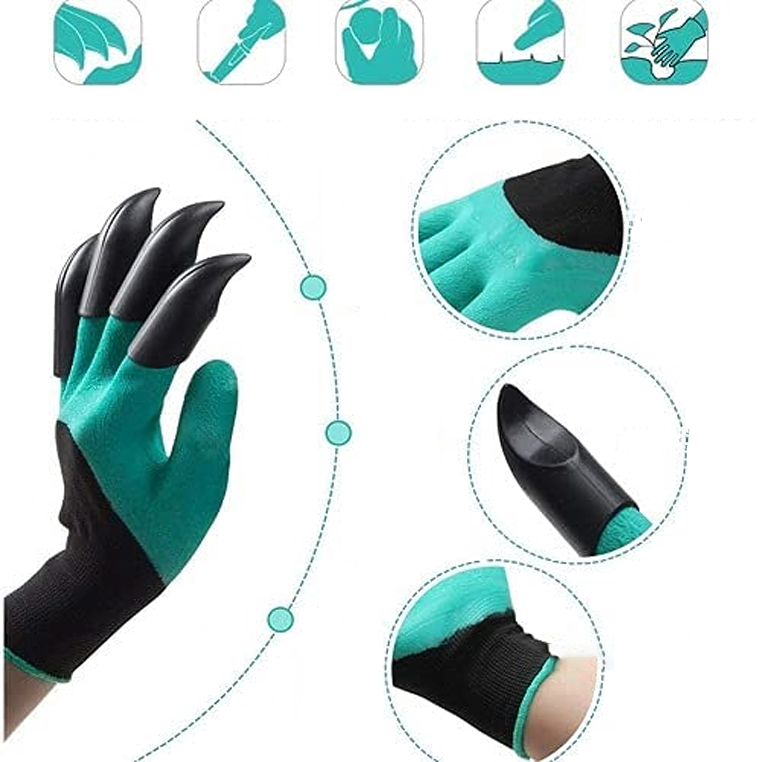Le punte in plastica integrate sulle dita consentono in pochi istanti di scavare buchette, smuovere il terreno e raccogliere piccoli detriti senza altri attrezzi.