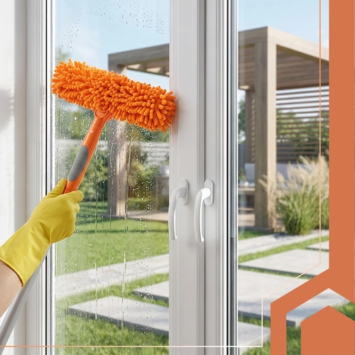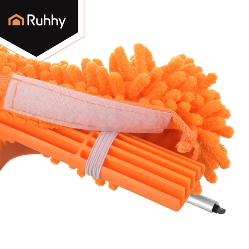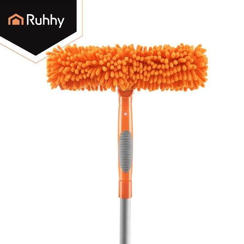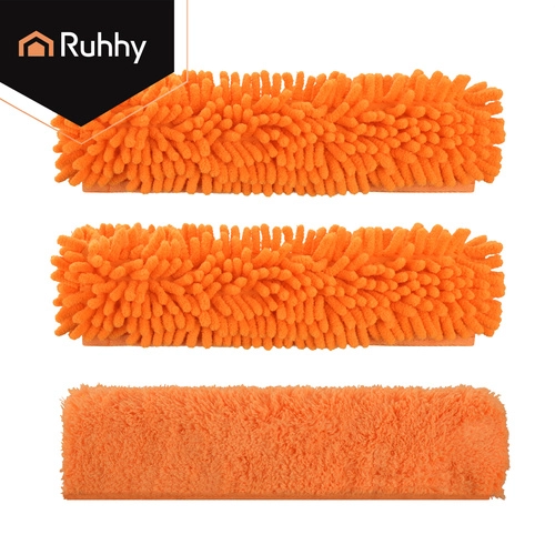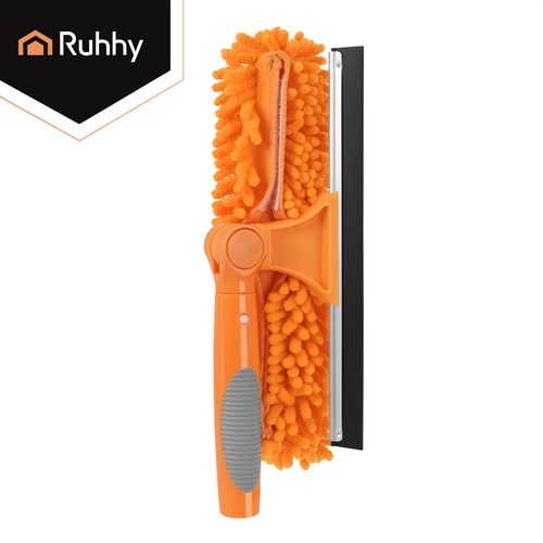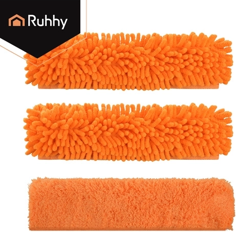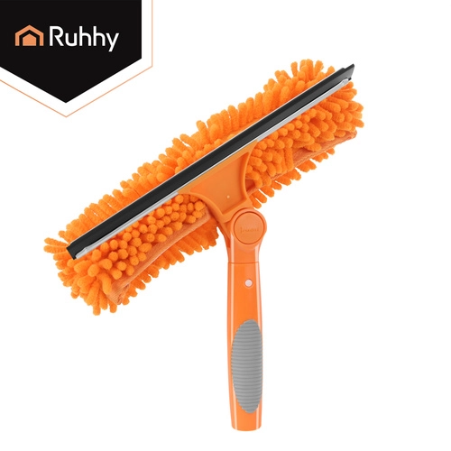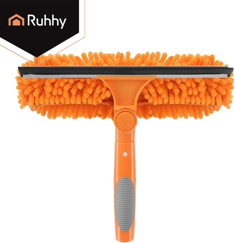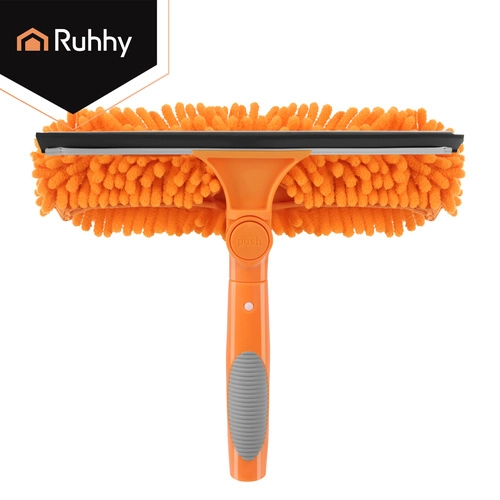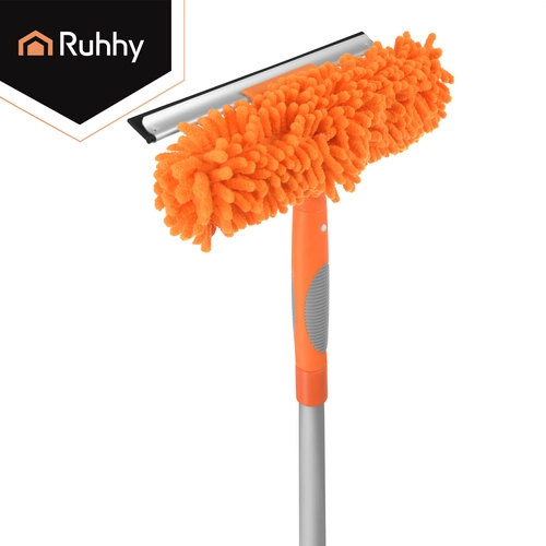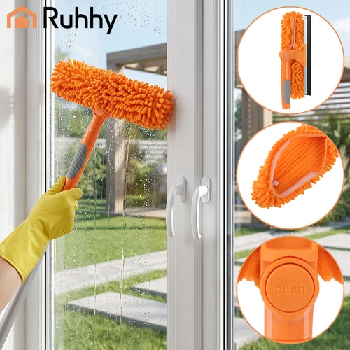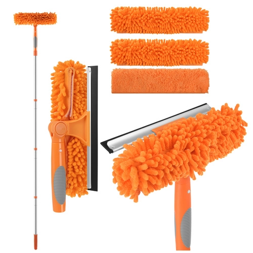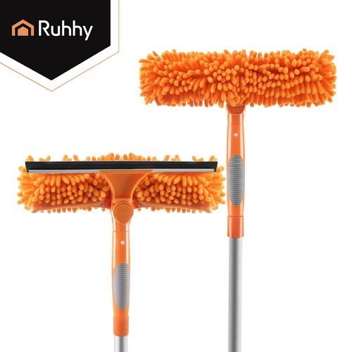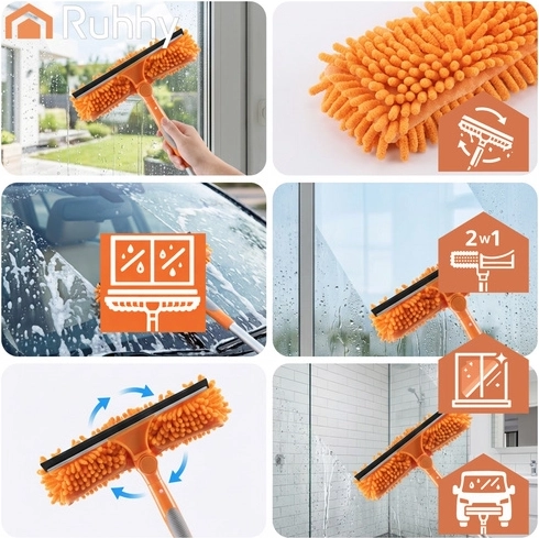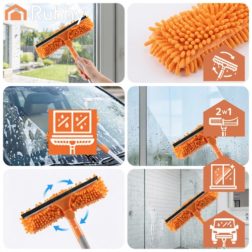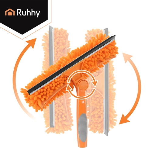 La testa doppia unisce la microfibra assorbente per il lavaggio e il tergivetro in gomma per rimuovere rapidamente l’acqua senza lasciare aloni. Tre copri-testa intercambiabili (2× chenille, 1× coral velvet liscio) migliorano l’efficacia in base al tipo di sporco e sono lavabili e riutilizzabili.