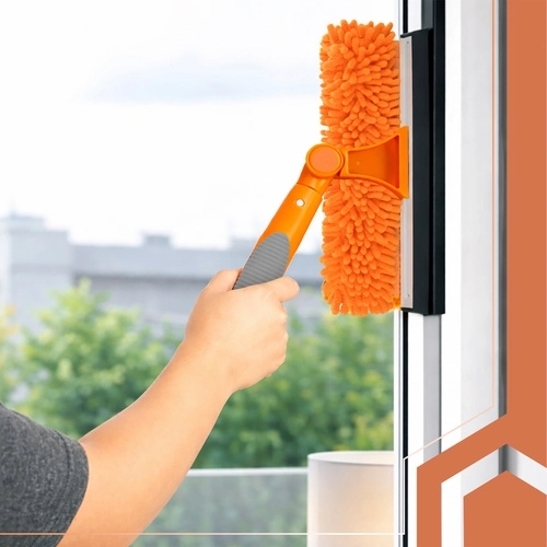 Il lavavetri RUHHY 3in1 è un aiuto universale per casa, auto e terrazza. La leggera asta telescopica in alluminio si estende fino a 1,8 m, così raggiungi in sicurezza i bordi superiori delle finestre e le ampie superfici vetrate. Lo snodo rotante a 180° consente di pulire in verticale e orizzontale e di arrivare facilmente negli angoli.