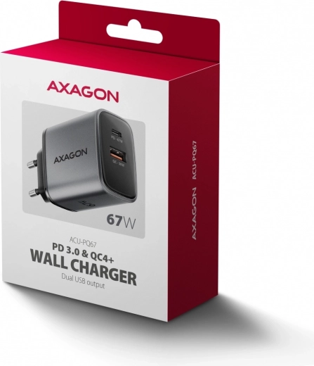 Il caricatore da viaggio AXAGON GaN 67W ricarica rapidamente fino a due dispositivi contemporaneamente. Grazie alla tecnologia GaN, al supporto USB Power Delivery 3.0 e Quick Charge 4+, alimenta notebook, telefoni e tablet alla massima velocità. Il corpo compatto, USB‑C PD 67W e USB‑A QC 30W lo rendono la scelta ideale per casa, ufficio e viaggi.