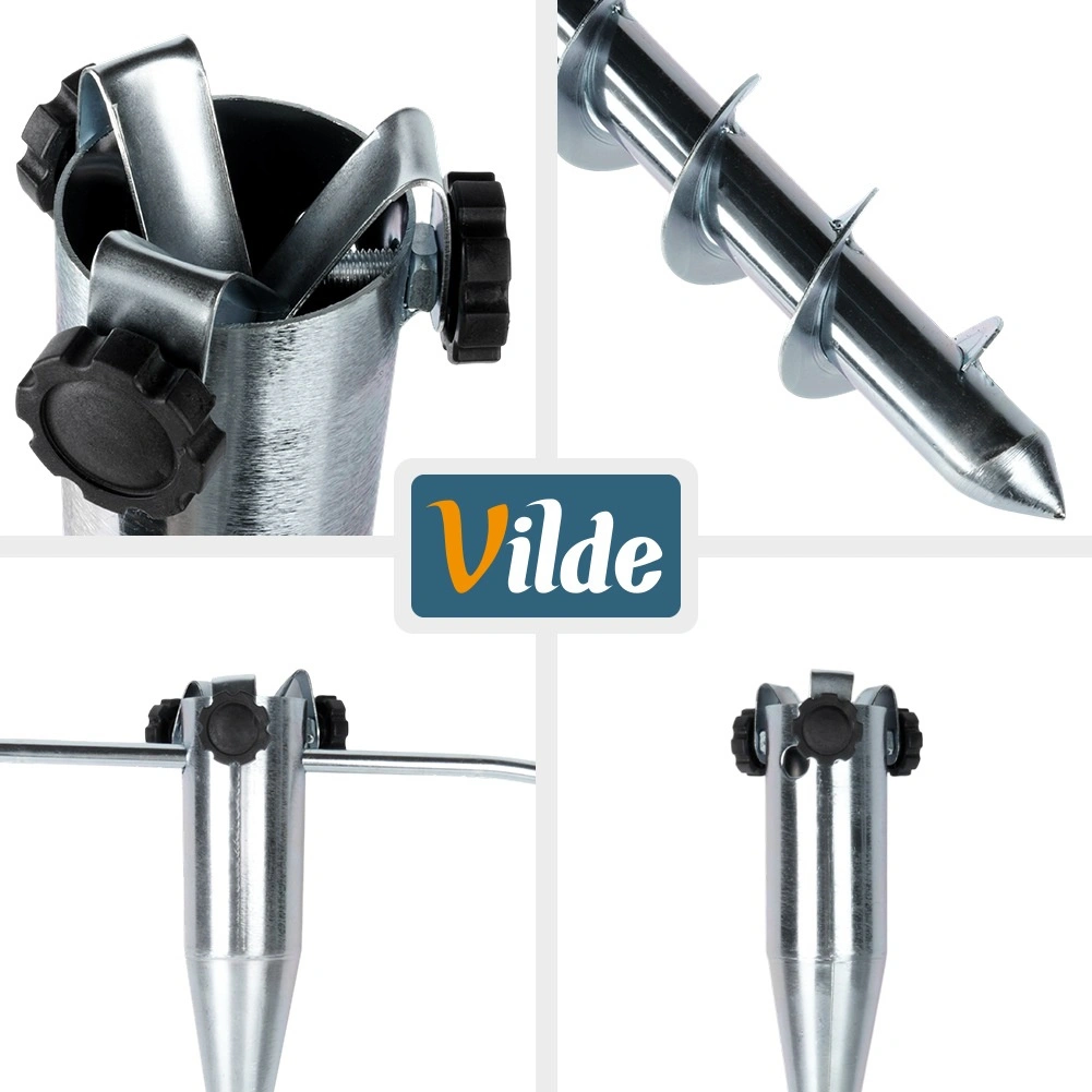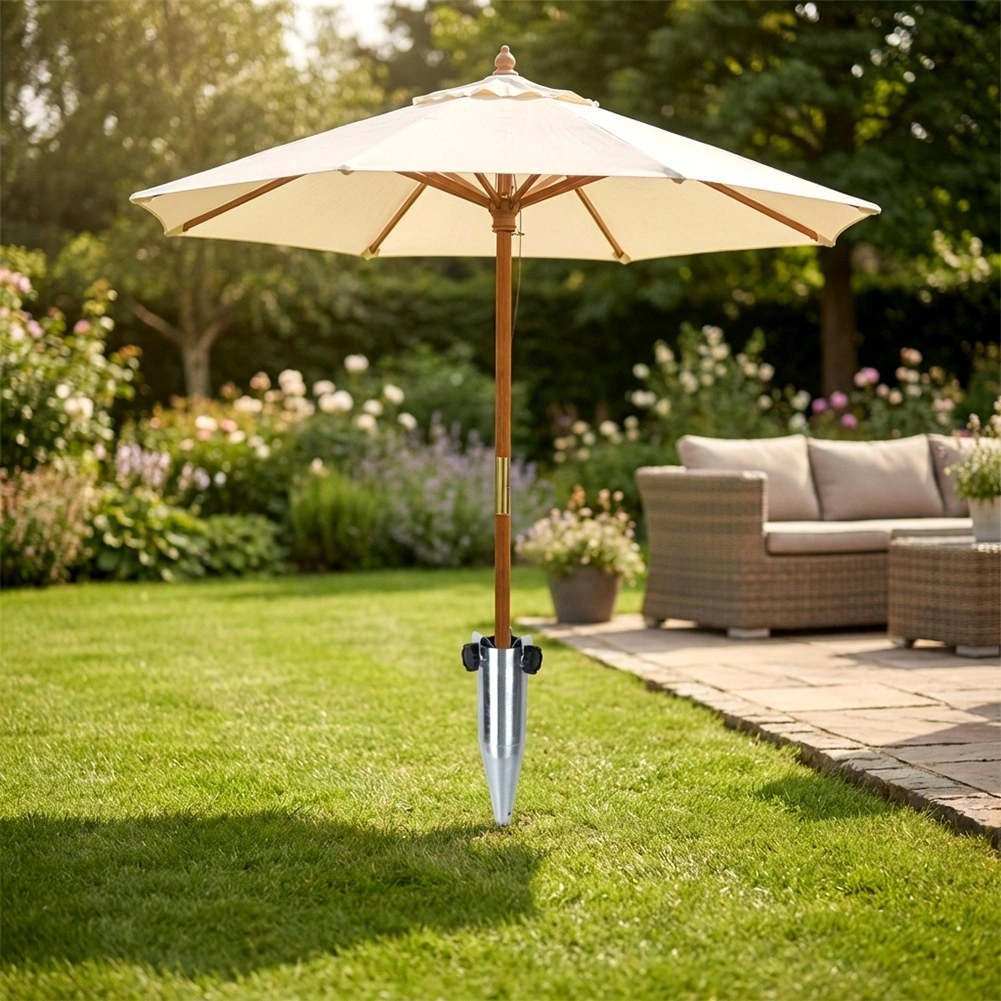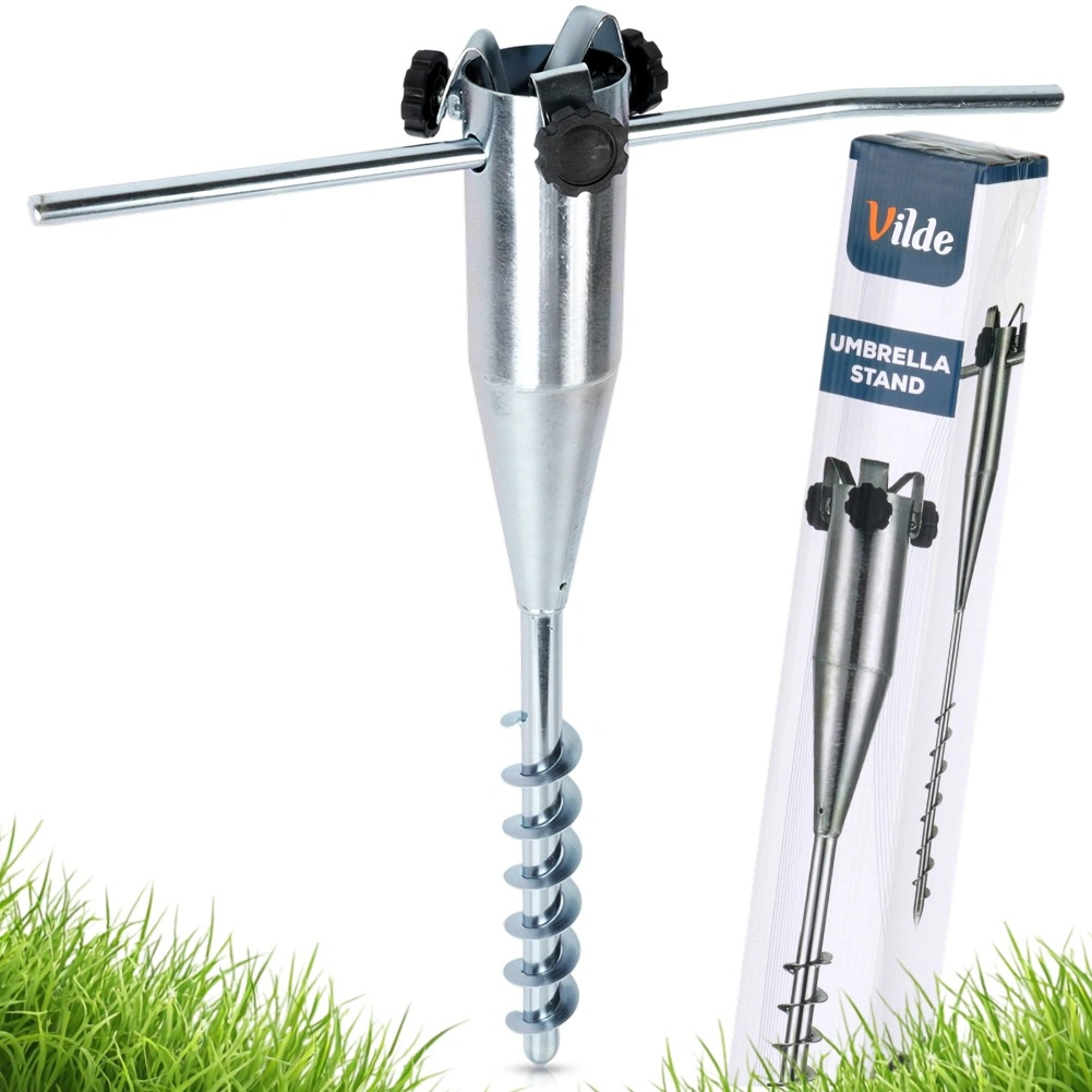 L’acciaio resistente con finitura zincata/metallizzata è pronto per le condizioni esterne: giardino, spiaggia e campeggio. Ottieni in pochi istanti la stabilità dell’ombrellone e goditi l’ombra senza timore delle raffiche di vento.