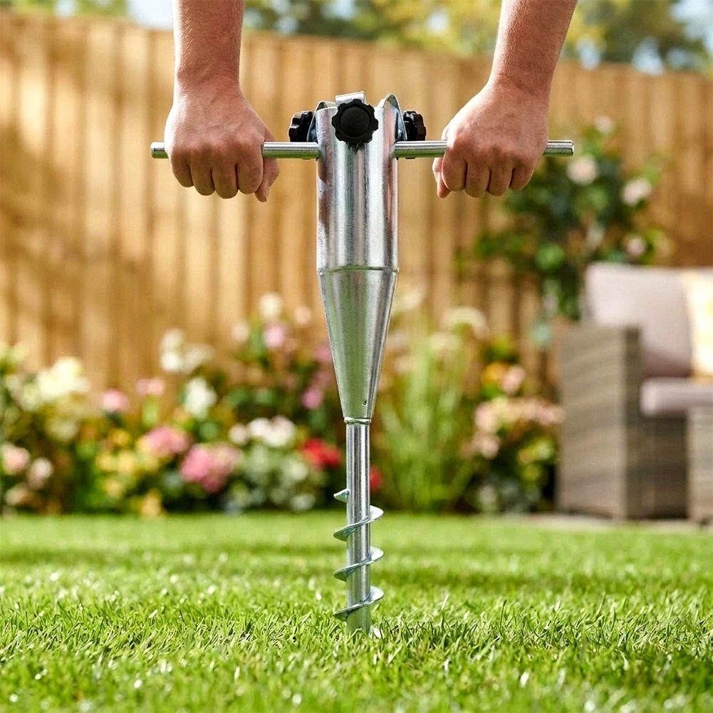 Fissa l’ombrellone dove ne hai bisogno, senza trascinare basi pesanti. Questa vite da terra in metallo lunga 56 cm si avvita facilmente nel terreno, nel prato o nella sabbia e, grazie alla punta a vite elicoidale, resta salda e affidabile. Il collare regolabile accoglie diametri di tubo comuni da 2 a 6 cm e la coppia di maniglie laterali facilita installazione e rimozione.