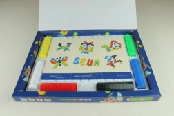 - Pezzi colorati, che i bambini mettono sulla base seguendo la loro fantasia o le istruzioni fornite.