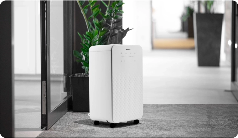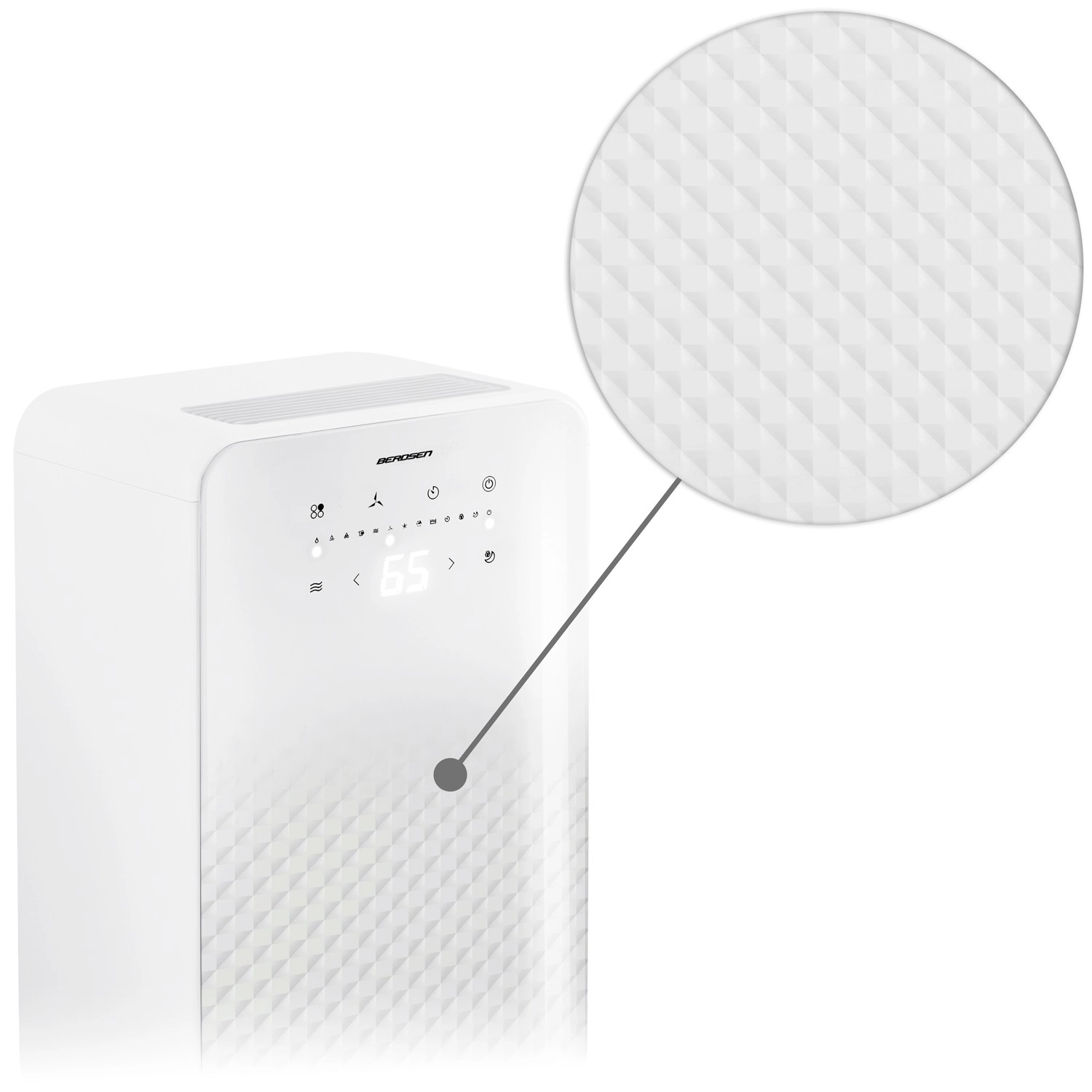 La mobilità è assicurata dalle ruote, dalle dimensioni compatte e dal basso livello di rumore di soli 39 dB, rendendolo adatto anche alla camera da letto. Con un assorbimento di 280 W e una portata d’aria di 100 m³/h offre un ottimo rapporto tra prestazioni e consumi.