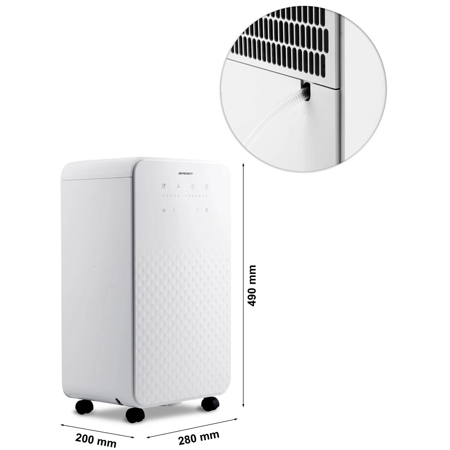 Il deumidificatore d’aria Berdsen è una soluzione affidabile per appartamenti, bagni, lavanderie e cantine. La tecnologia a compressore riduce rapidamente l’umidità in eccesso, limita la formazione di muffe e odori sgradevoli e contribuisce a un ambiente più sano. L’ampio display LCD mostra l’umidità attuale e consente impostazioni precise nell’intervallo 30–80% UR.