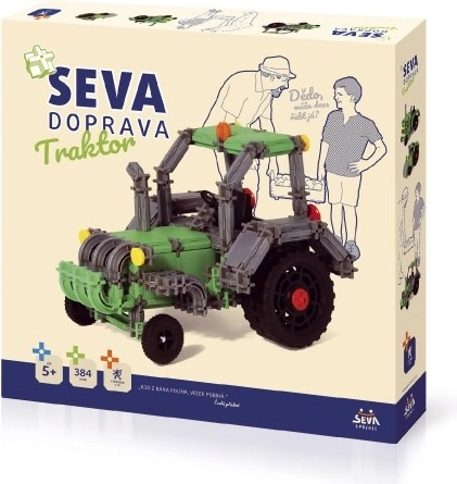 Il set di costruzioni SEVA Trasporti - Trattore offre la possibilità di costruire i propri modelli di trattori unici con 384 pezzi. Divertimento qualitativo e creativo per bambini dai 5 anni.