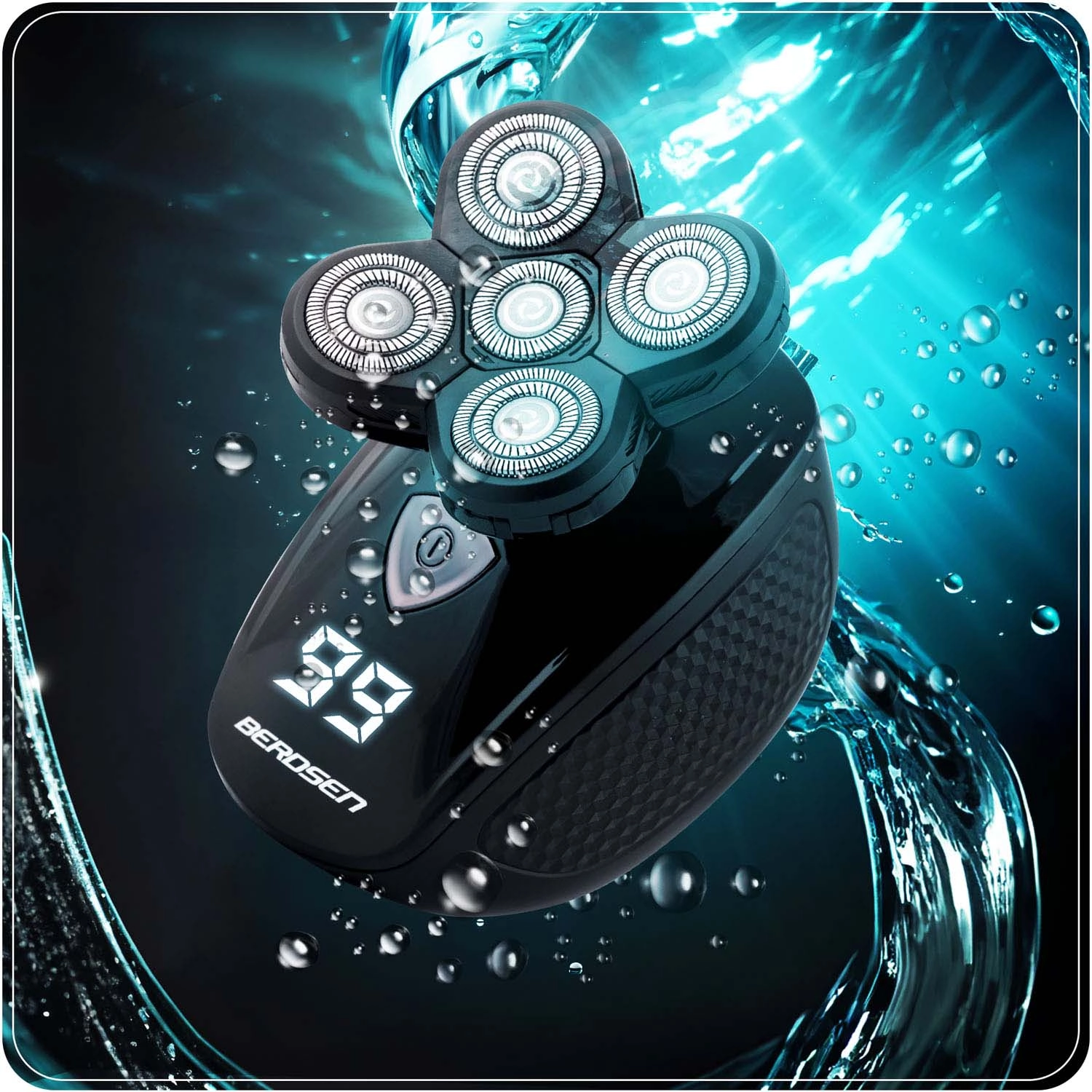 Set universale 5 in 1 per radere e rifinire quotidianamente barba e capelli. Offre un motore potente, display LCD con indicatore di batteria e giri, lame doppie in acciaio per un taglio preciso senza strappi, 5 testine funzionali + 3 pettini guida, batteria Li‑Ion da 600 mAh fino a 60 minuti di autonomia e ricarica rapida USB‑C in 2 ore. Il design impermeabile IPX7 facilita la pulizia e la rasatura sotto la doccia.
