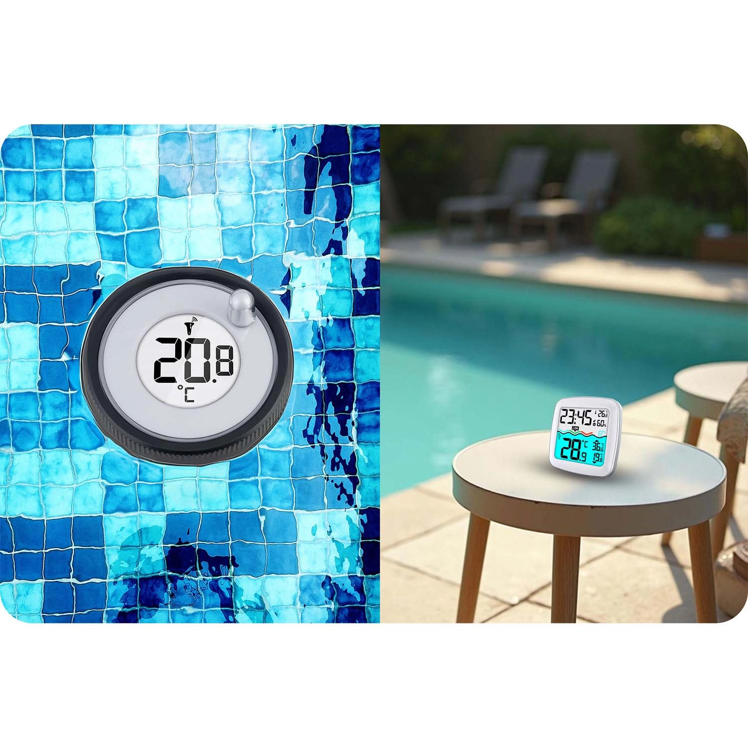 Tieni sotto controllo il meteo e la temperatura dell’acqua della piscina in un unico posto. Questa stazione meteo wireless con sensore galleggiante offre ora esatta DCF, monitoraggio della temperatura della piscina, registrazione dei valori massimi e minimi e display LCD chiaro. L’elegante finitura bianca si adatta a qualsiasi interno e all’area piscina.