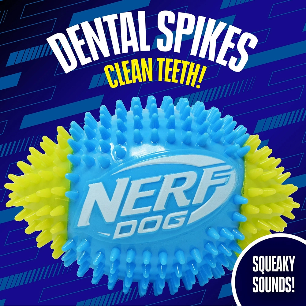 Il giocattolo Nerf Dog palla da calcio squeak con punte offre un divertimento interattivo dinamico per i cani che amano muoversi. La gomma termoplastica (TPR) resistente garantisce elasticità, lunga durata e delicatezza sui denti. La superficie testurizzata con punte migliora la presa durante il riporto e al contempo favorisce la masticazione naturale e massaggia le gengive.