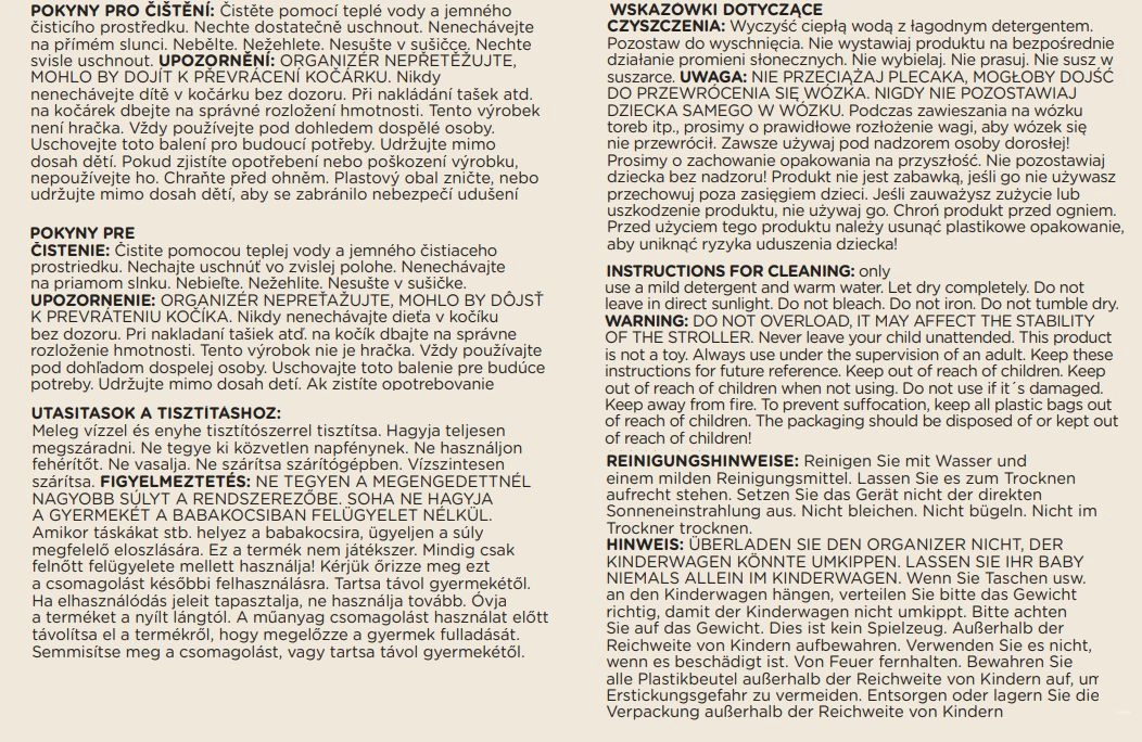 Lo scomparto principale si chiude con zip per una custodia sicura; all’interno trovi un rivestimento chiaro per una migliore visibilità, 5 tasche facilmente accessibili e 2 tasche termiche integrate per mantenere la temperatura di bevande o alimenti. La tracolla regolabile con moschettoni permette un rapido fissaggio al maniglione del passeggino e un comodo trasporto a spalla.