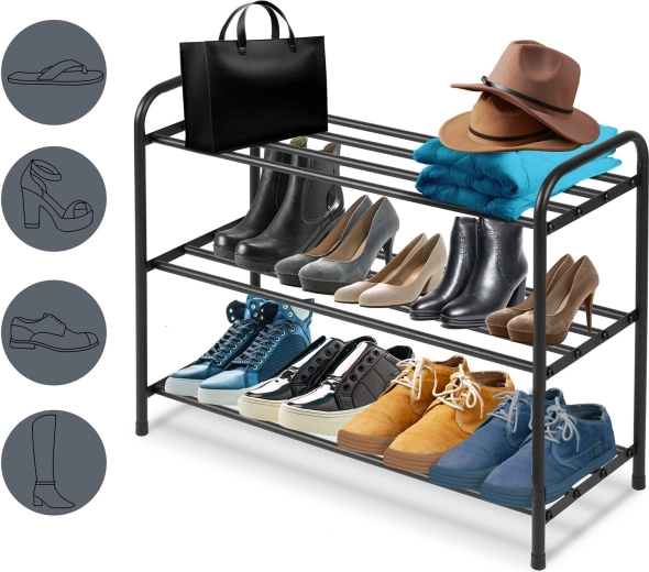 Tre livelli spaziosi contengono le scarpe di tutta la famiglia e le tengono in ordine, sollevate da terra e senza disordine.