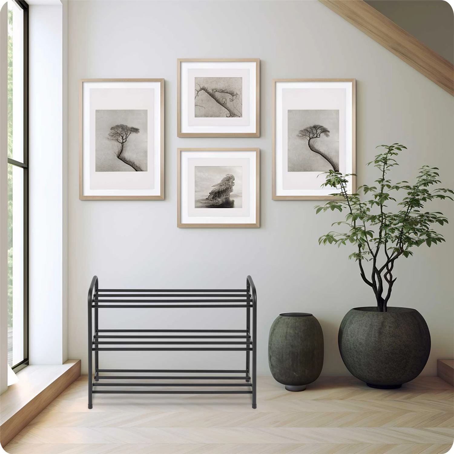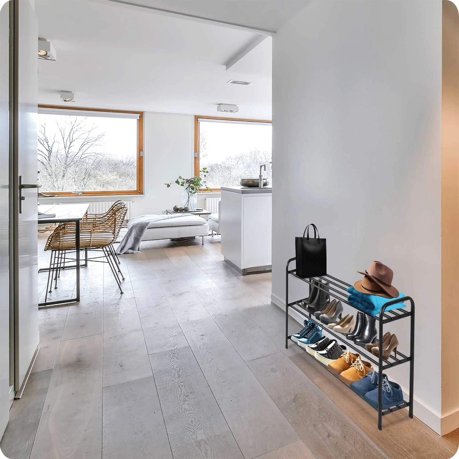 La scarpiera Massido a tre livelli aiuta a mantenere le tue calzature ordinate e sempre a portata di mano. Il telaio metallico stabile e le griglie aperte favoriscono una migliore circolazione dell’aria, così le scarpe restano asciutte, senza odori e non si deformano.
