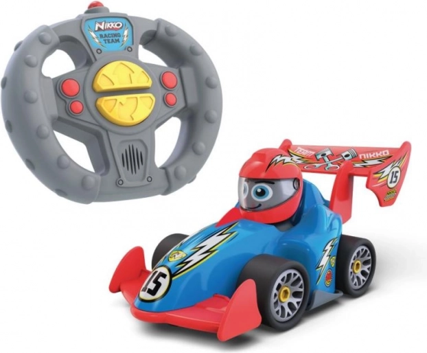 Presenta ai piccoli piloti la loro prima macchinina radiocomandata My First Nikko. Il semplice telecomando permette di partire subito in pista, fare retromarcia e riprodurre divertenti suoni da gara e beep. Bordi morbidi e alta qualità costruttiva garantiscono un gioco sicuro, batterie incluse e il giocattolo è adatto dai 2 anni in su.