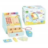 La stilosa cassa in legno VILAC farà felici piccoli commessi e commesse. Offre una tastiera numerica funzionante, un cassetto portamonete, un contatore e un terminale di pagamento. Inclusi anche banconote e monete e un classico pulsante sonoro, che rende il gioco più autentico.