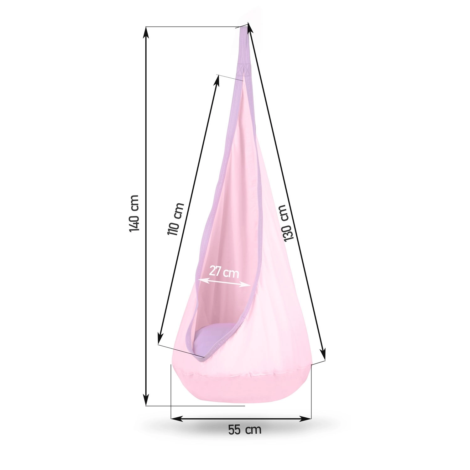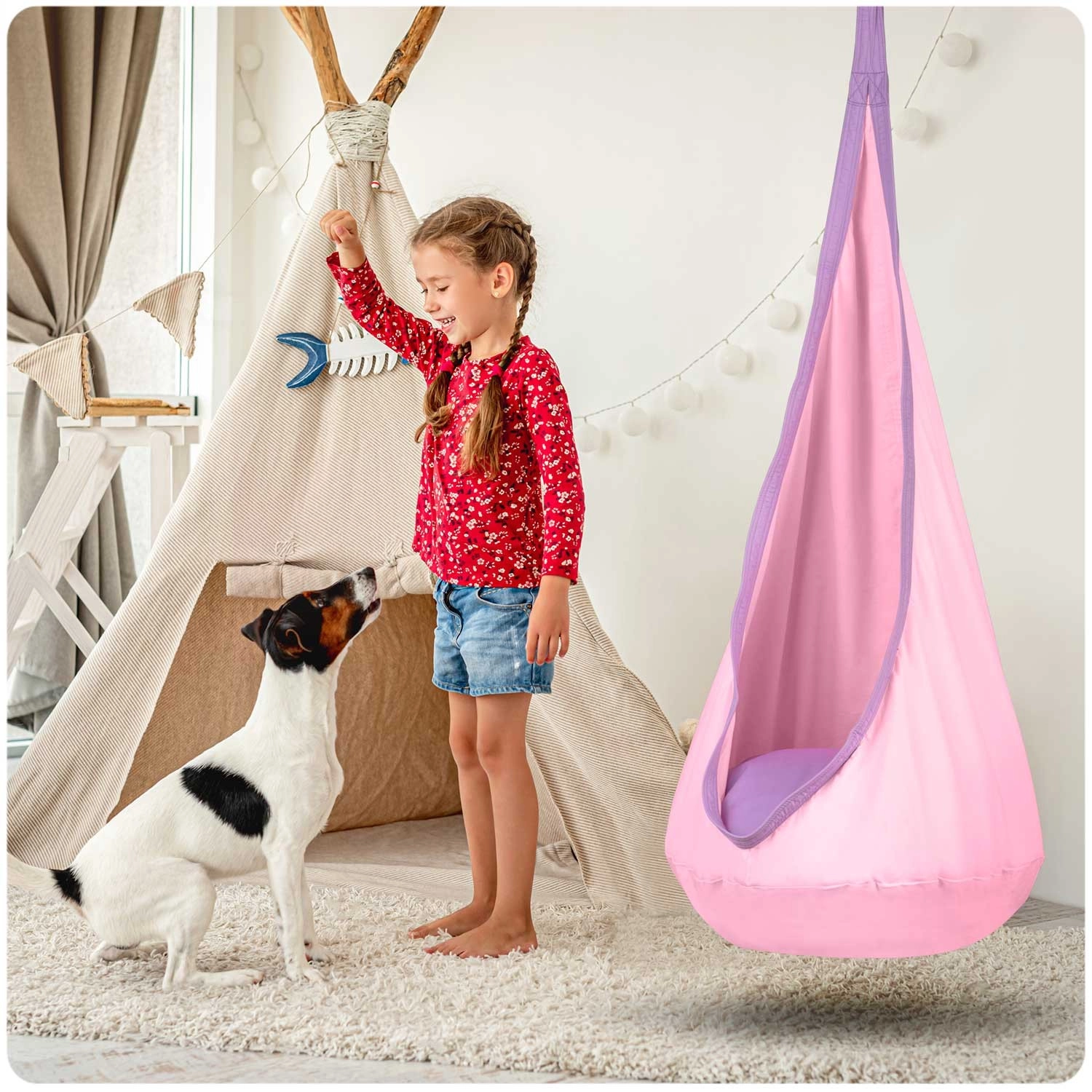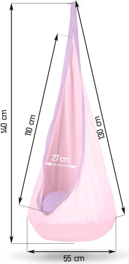 Comoda altalena sospesa per bambini – bozzolo per riposo e relax divertente in cameretta, in terrazza e in giardino. Il morbido sedile imbottito è incluso nella confezione, così come il gancio di sospensione. Il tessuto resistente con cuciture rinforzate e una portata fino a 80 kg garantisce un dondolio sicuro. Il rivestimento si può lavare in lavatrice e, una volta riposto, occupa pochissimo spazio.