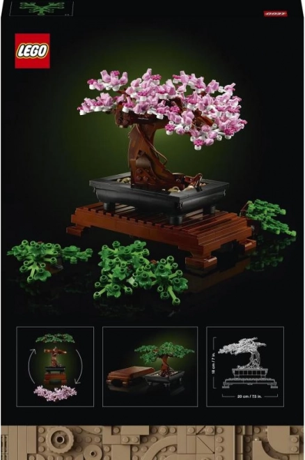 LEGO Albero di Bonsai è il regalo perfetto e un progetto accattivante per coloro che amano gli alberi bonsai, le piante e la costruzione creativa con i mattoncini LEGO. Il set include pezzi intercambiabili per decorare l'albero con foglie verdi classiche o fiori di ciliegio rosa. I fiori sono creati in modo interessante con piccole rane e il modello può essere facilmente esposto nel tuo interno grazie al contenitore rettangolare e al supporto. Le dimensioni del modello sono circa 18 cm in altezza, 21 cm in lunghezza e 20 cm in larghezza.