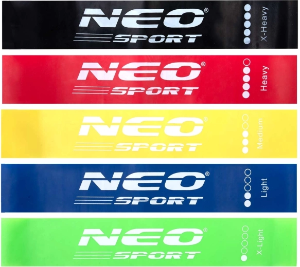 Il set di 5 elastici di resistenza NEO SPORT è una scelta eccellente per l’allenamento quotidiano a casa, in palestra e in viaggio. Ogni banda offre un differente livello di carico, così potrai selezionare facilmente la resistenza adatta per attivare i glutei, rafforzare la parte superiore del corpo o per esercizi di stabilizzazione e riabilitazione. Grazie alle dimensioni compatte e al peso ridotto, puoi averli sempre con te.