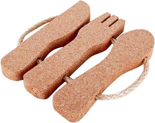 Pratico e stiloso sottopentola in sughero a forma di posate che protegge tavolo e piano di lavoro da calore e graffi. Grazie al sughero naturale è leggero, resistente e facile da mantenere. Ideale per l’uso quotidiano in cucina e per il servizio in tavola. Sughero naturale, protezione termica e design decorativo in uno.