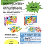 - 14 schede laminate (28 tavole/attività), pennarello con gommino cancellabile, istruzioni