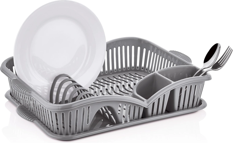 Pratico scolapiatti per asciugare facilmente piatti, bicchieri e posate. Fa risparmiare spazio sul piano di lavoro, mantiene la cucina pulita e ordinata e garantisce un rapido drenaggio dopo il lavaggio.