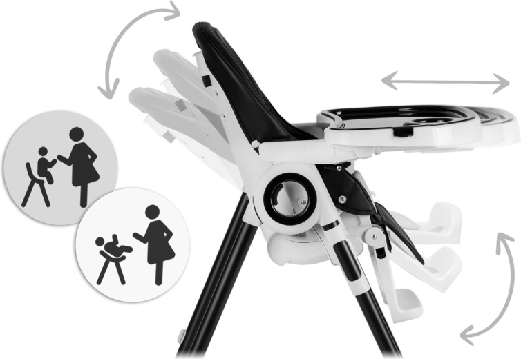 8 livelli di regolazione in altezza, 5 posizioni dello schienale e poggiapiedi regolabile garantiscono comfort durante i pasti e il riposo, dai primi mesi fino ai 3 anni.
