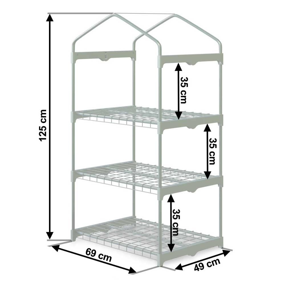 Mini serra da giardino con 3 ripiani 125 × 69 × 49 cm Plonos