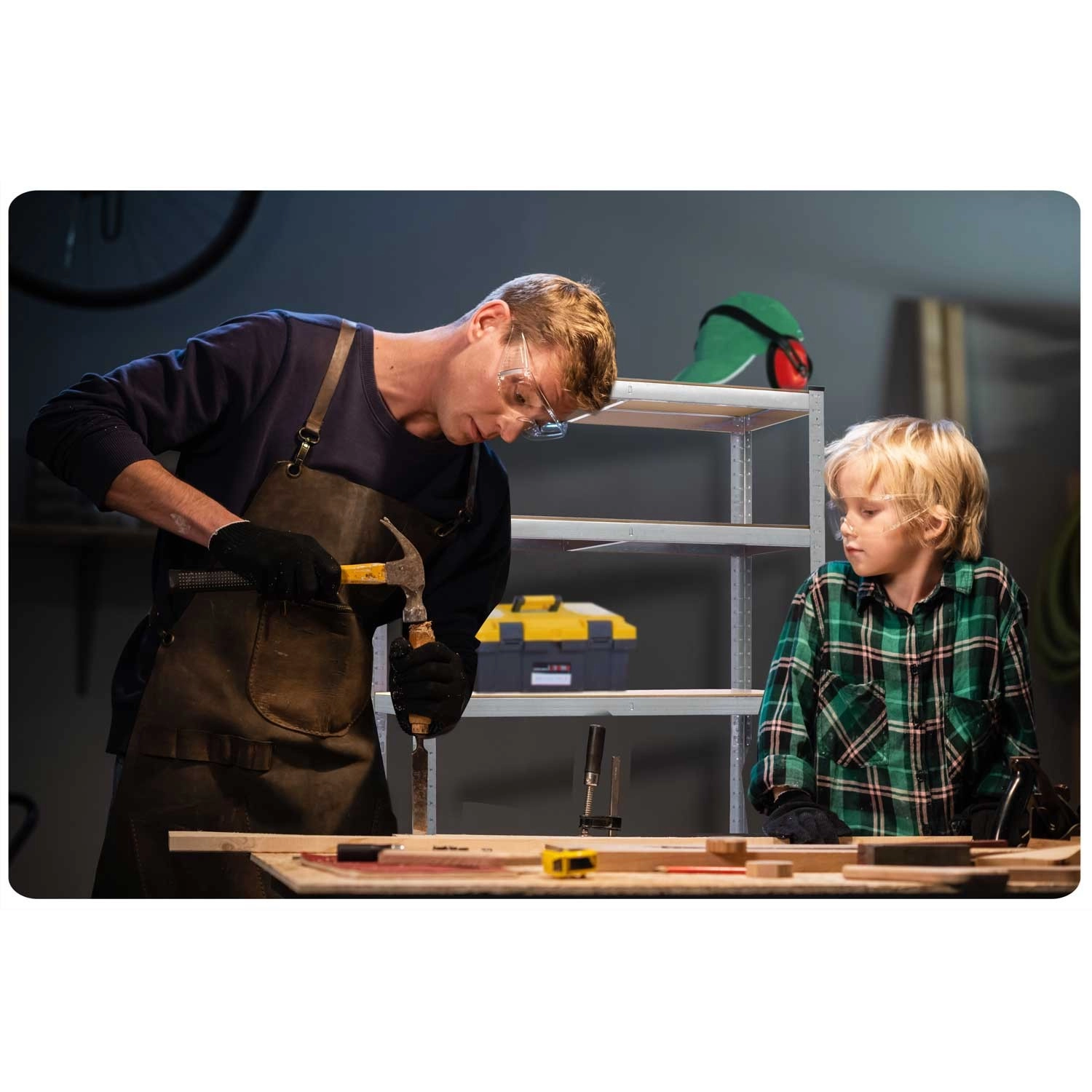 Il pratico concetto modulare ti permette di regolare l’altezza dei ripiani secondo le esigenze e di riconfigurare l’intero sistema in pochi istanti: in due scaffali più bassi oppure come comodo banco da lavoro per l’officina. Il sistema di montaggio senza viti fa risparmiare tempo e attrezzi e i piedini in plastica evitano i graffi sul pavimento.