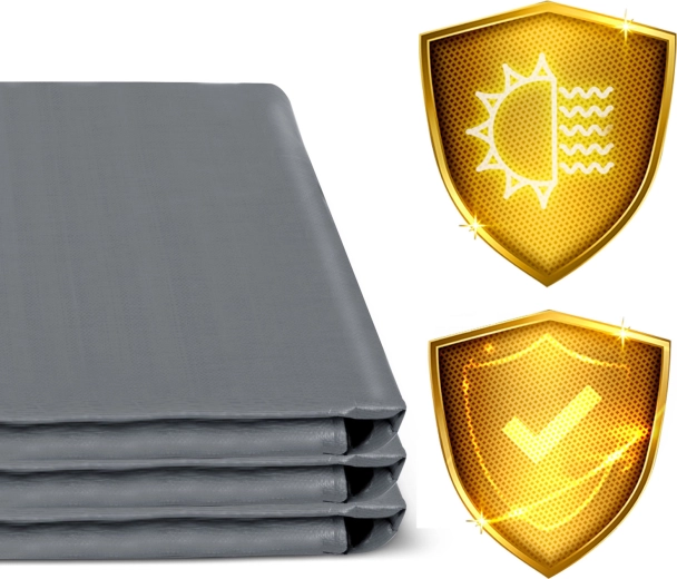 Il materiale è resistente ai raggi UV, agli agenti atmosferici comuni e a specifici prodotti chimici (acidi, alcoli, benzina e alcuni detergenti). Grazie agli occhielli in acciaio inox lungo il perimetro e agli angoli rinforzati, il telo si fissa facilmente e in sicurezza. La finitura bifacciale in colore argento‑nero offre un utilizzo pratico in base alle necessità.