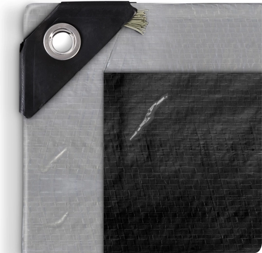Pratici occhielli in acciaio inox facilitano un ancoraggio rapido e sicuro. Angoli e bordi rinforzati aumentano la resistenza nei punti più sollecitati. La finitura bicolore (argento‑nero) consente un uso versatile in base alle esigenze di riflessione/assorbimento di calore e luce.