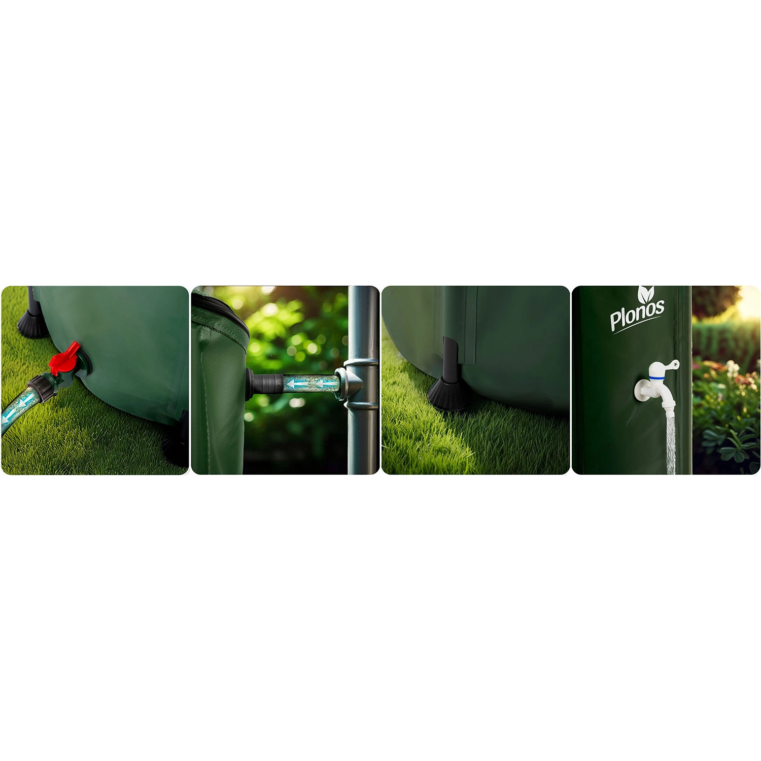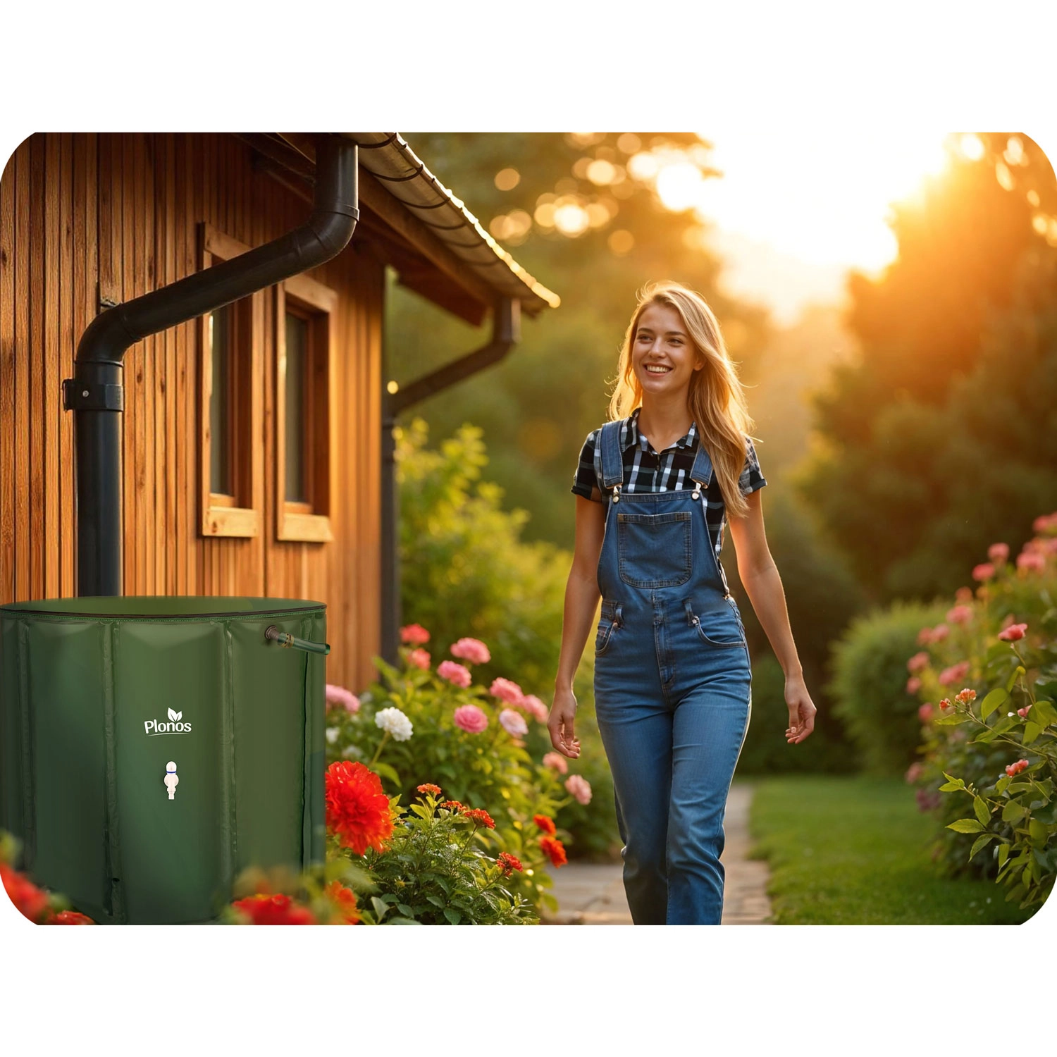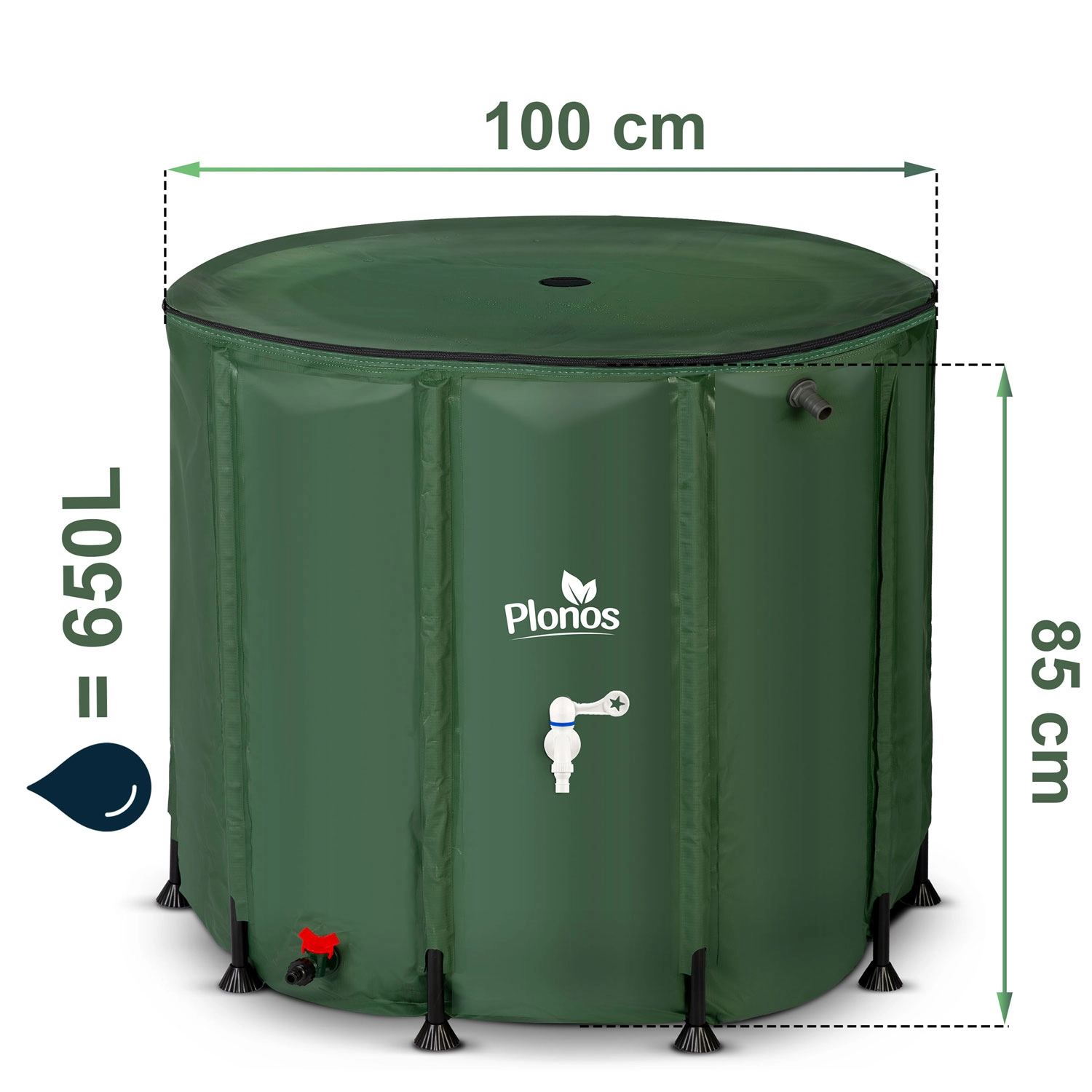 Conserva gratuitamente l’acqua piovana raccolta per giardino, serra e prato. Il fusto pieghevole per acqua piovana Plonos 650 l offre grande capacità, dosaggio semplice tramite rubinetto frontale e svuotamento rapido grazie alla valvola inferiore. Con il collegamento alla grondaia e l’ingresso superiore con retina, l’acqua resta più pulita, senza foglie e impurità.