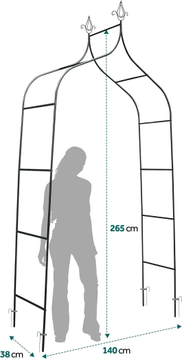 Crea un ingresso incantevole al tuo giardino con questa elegante pergola alta 265 cm. Struttura in acciaio resistente con verniciatura a polvere, ancoraggio stabile al suolo e montaggio semplice senza attrezzi specializzati la rendono un supporto ideale per rose, edera, vite e altre piante rampicanti. Perfetta da decorare con catene luminose e addobbi per occasioni festive.
