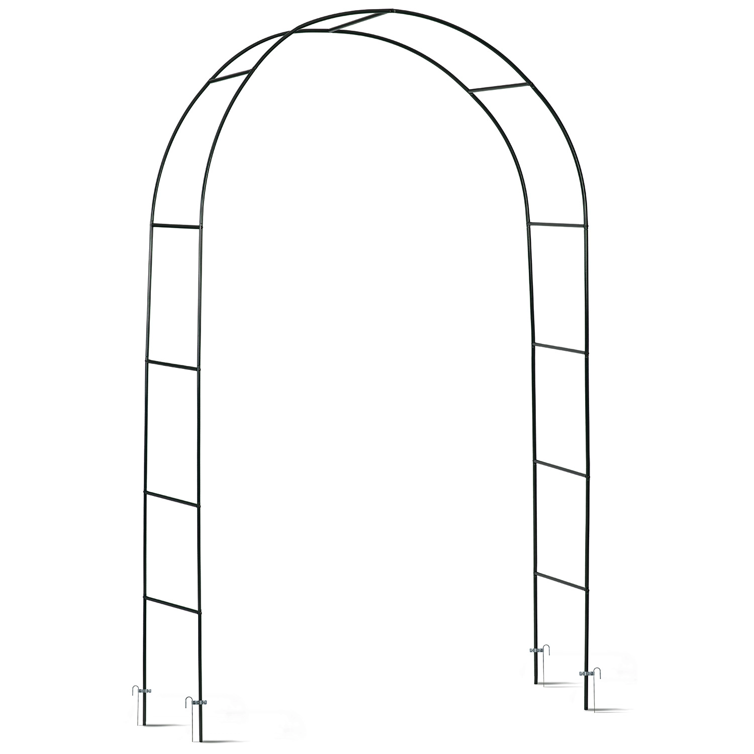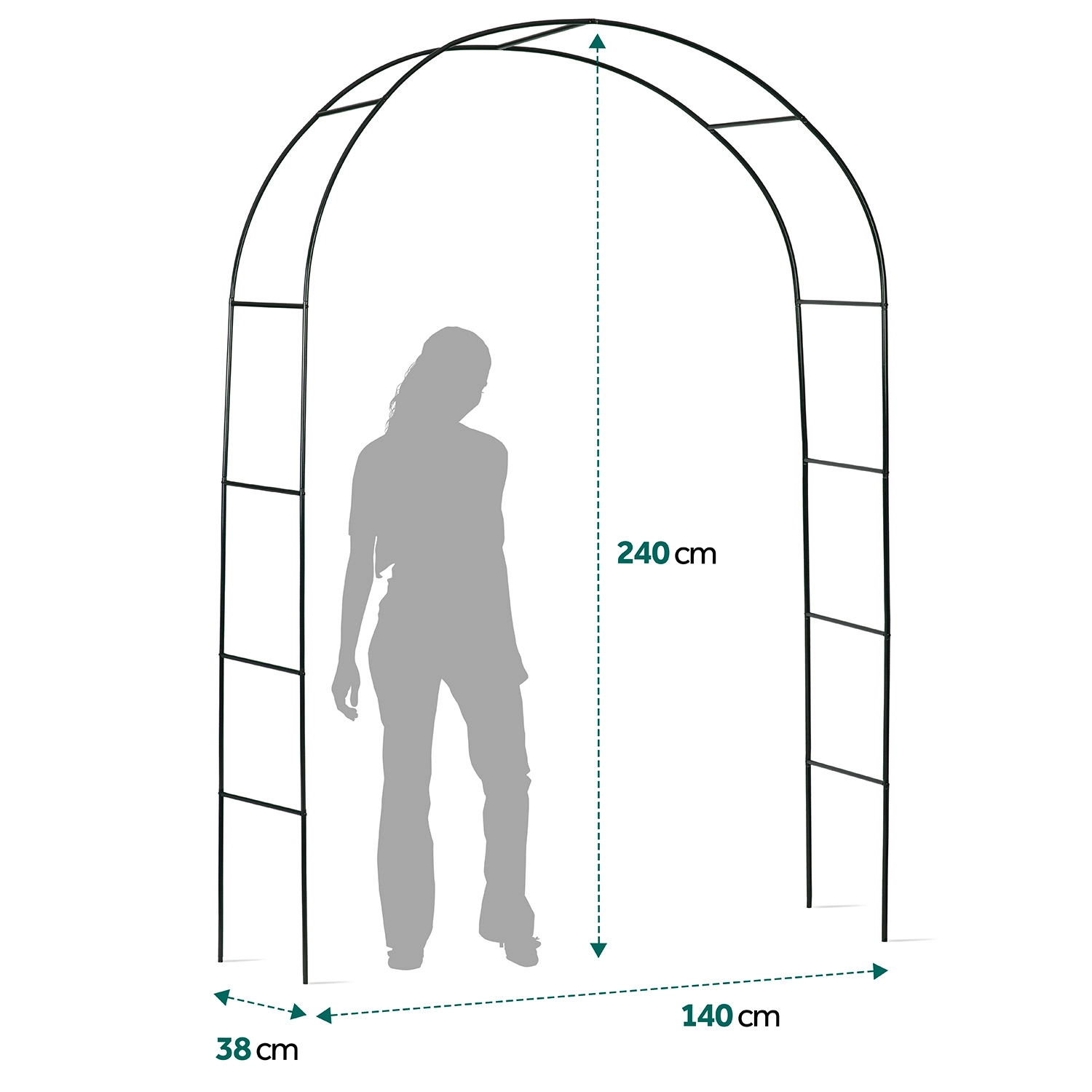 Elegante pergola ad arco da giardino con altezza di 240 cm che dona un ingresso romantico al tuo giardino e funge da supporto per piante rampicanti. Dispone di una robusta struttura in acciaio con verniciatura a polvere, montaggio semplice senza attrezzi specializzati e ancoraggi per un fissaggio stabile nel terreno. Ideale per rose, edera, vite e decorazioni con catene luminose.