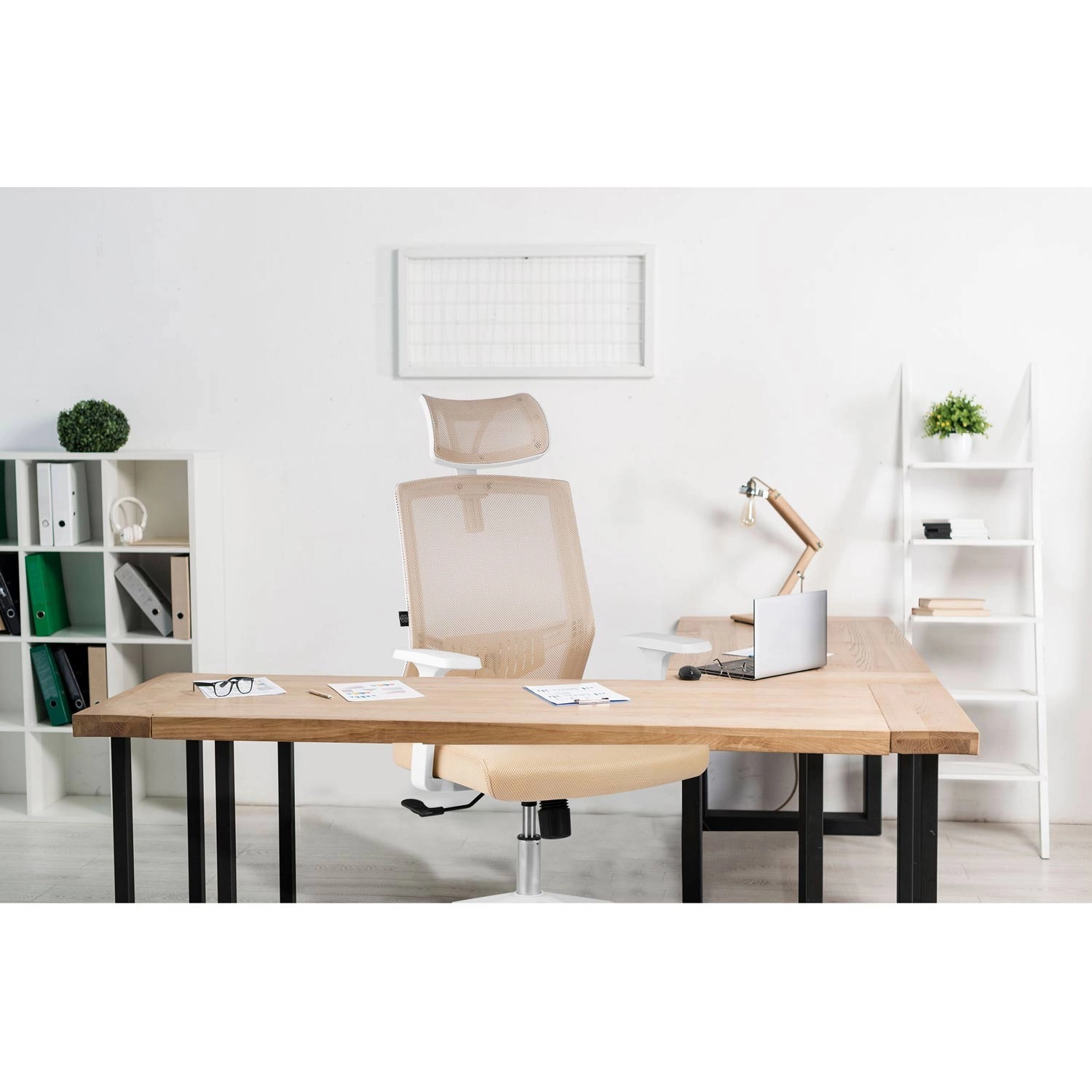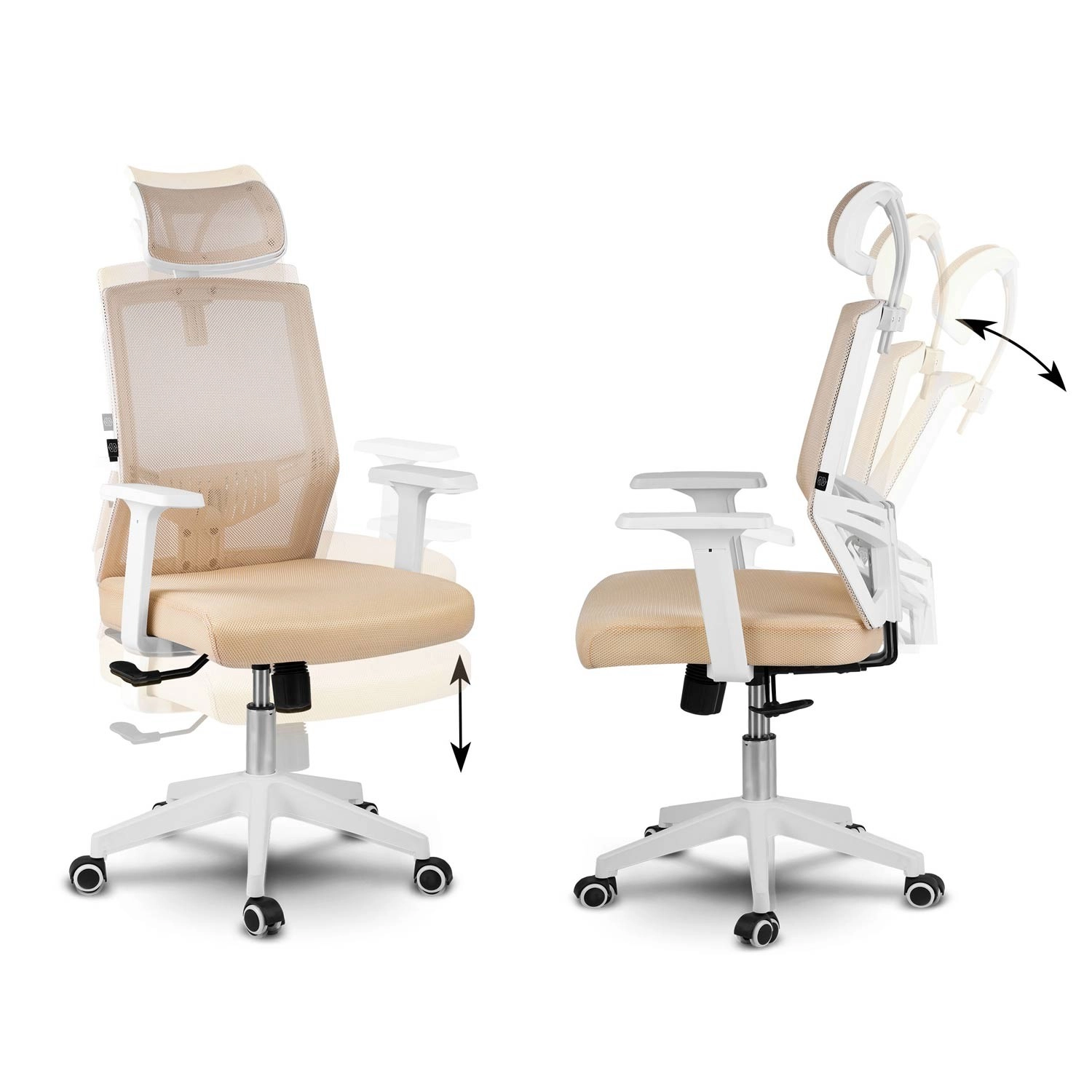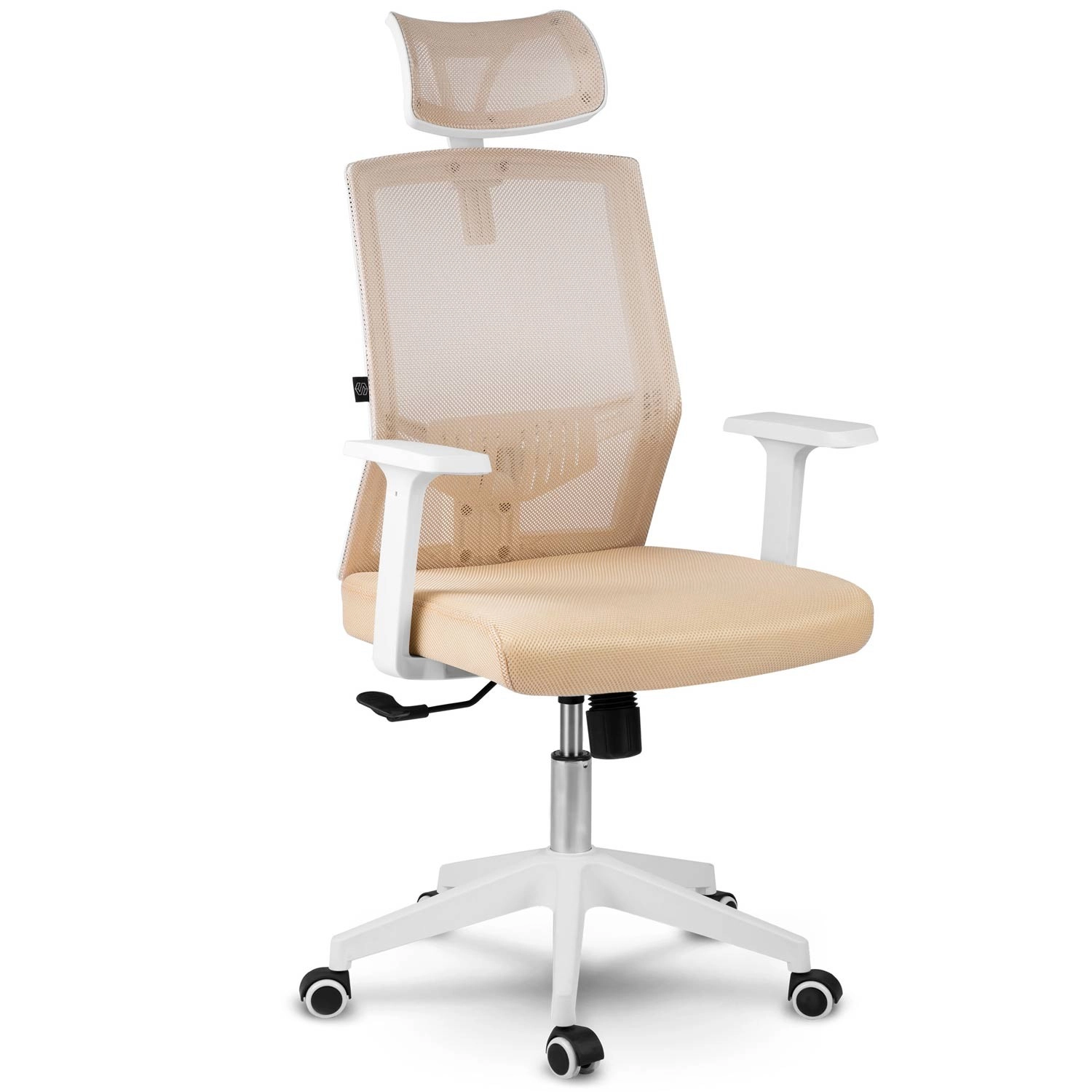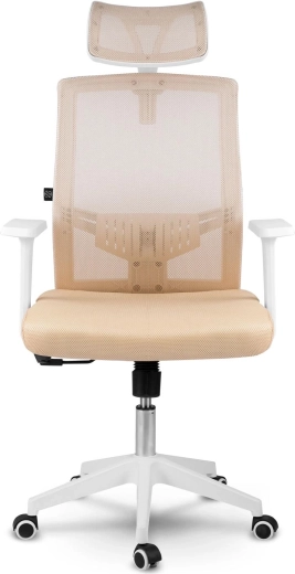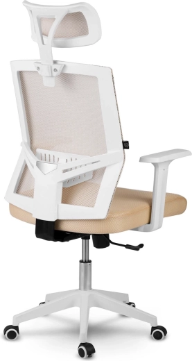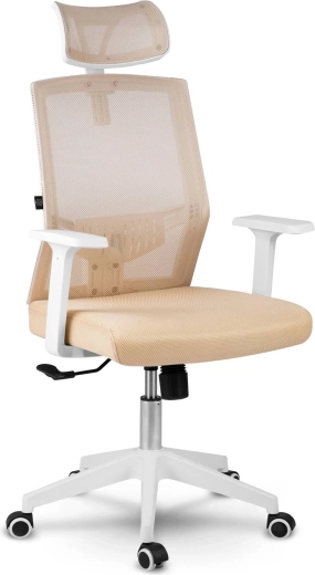 La sedia da ufficio Sofotel Rotar in color beige unisce microrete traspirante, design ergonomico con supporto lombare e poggiatesta regolabile. Offre regolazione continua dell'altezza, meccanismo a dondolo con blocco e ruote silenziose gommate che non graffiano il pavimento.